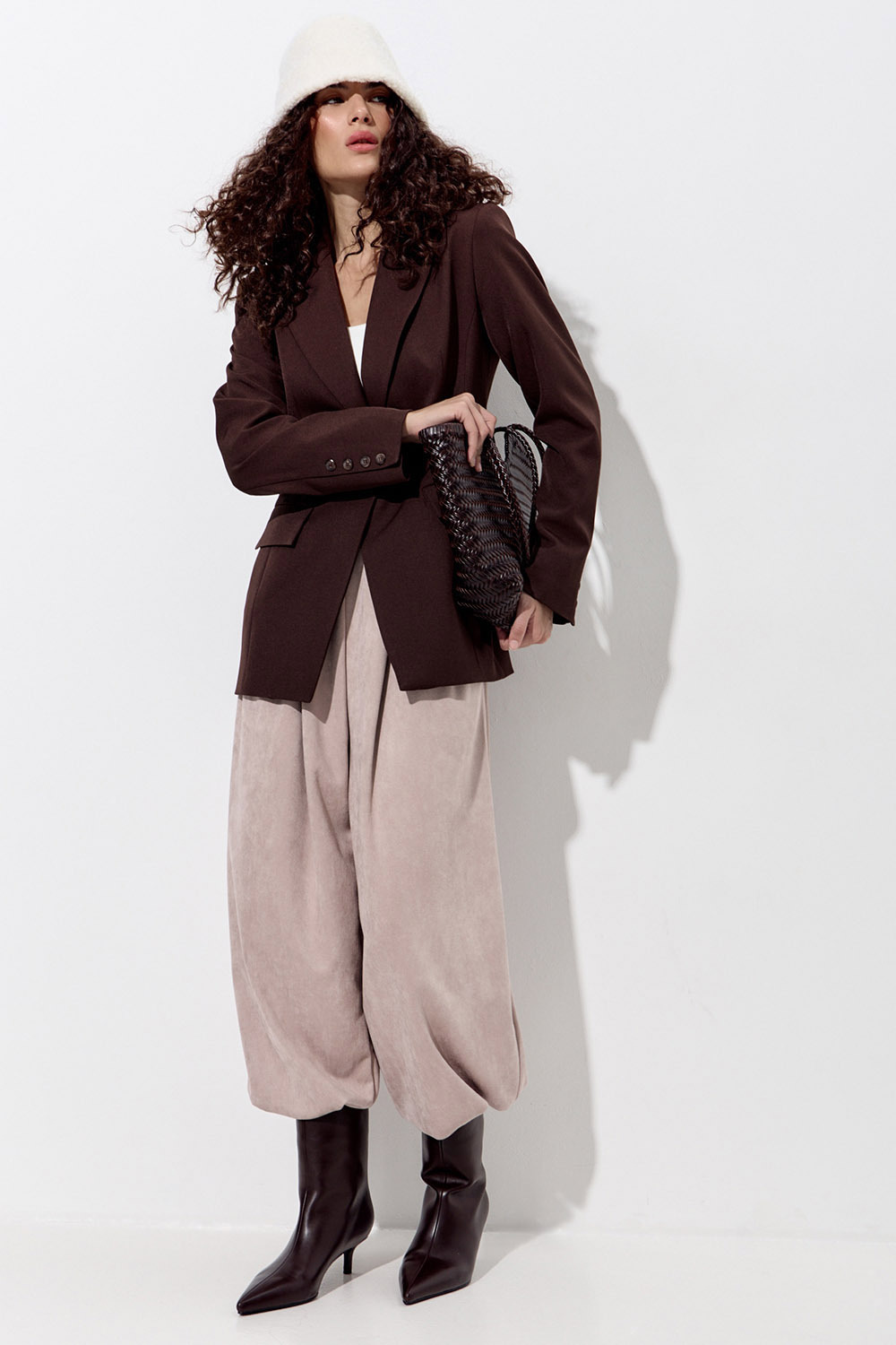 Размер на модели S. Рост Дианы 177 см, ее параметры: 84-62-92.