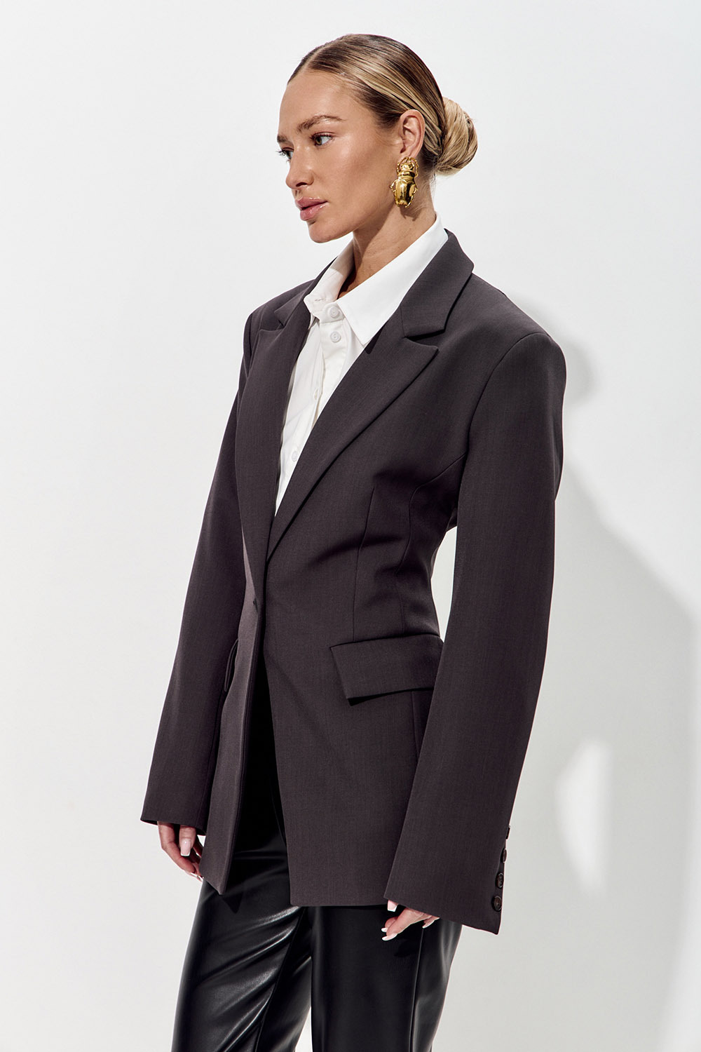 Приталенный пиджак "песочные часы" цвета графит