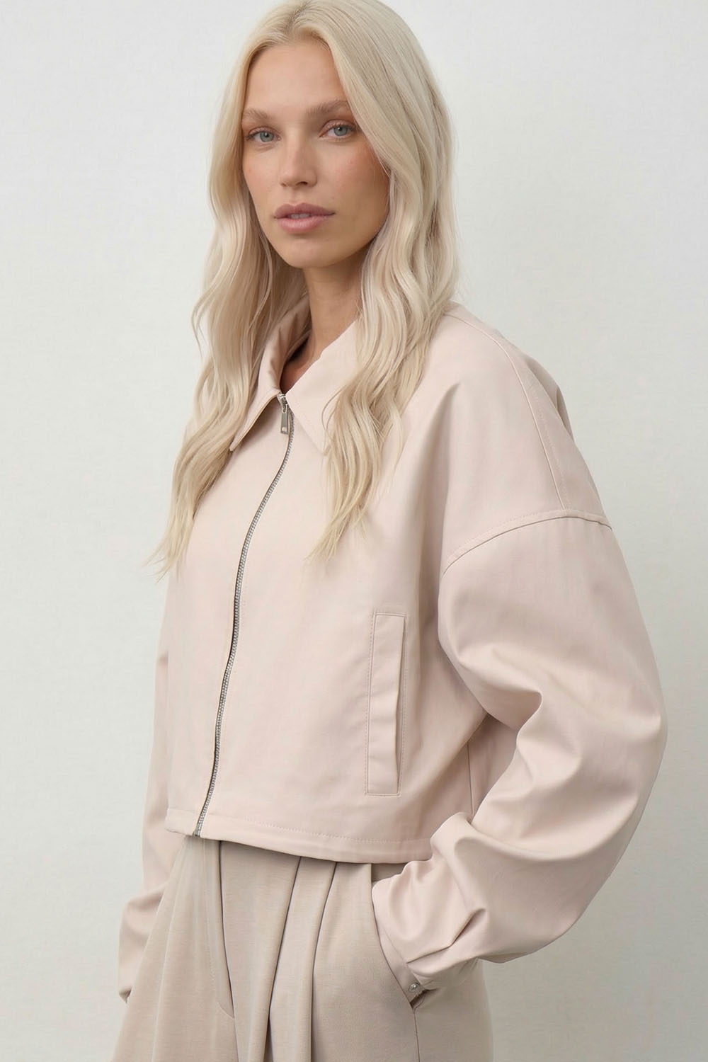 На моделях размер XS. Рост Анастасии 172 см, ее параметры: 85-63-86.