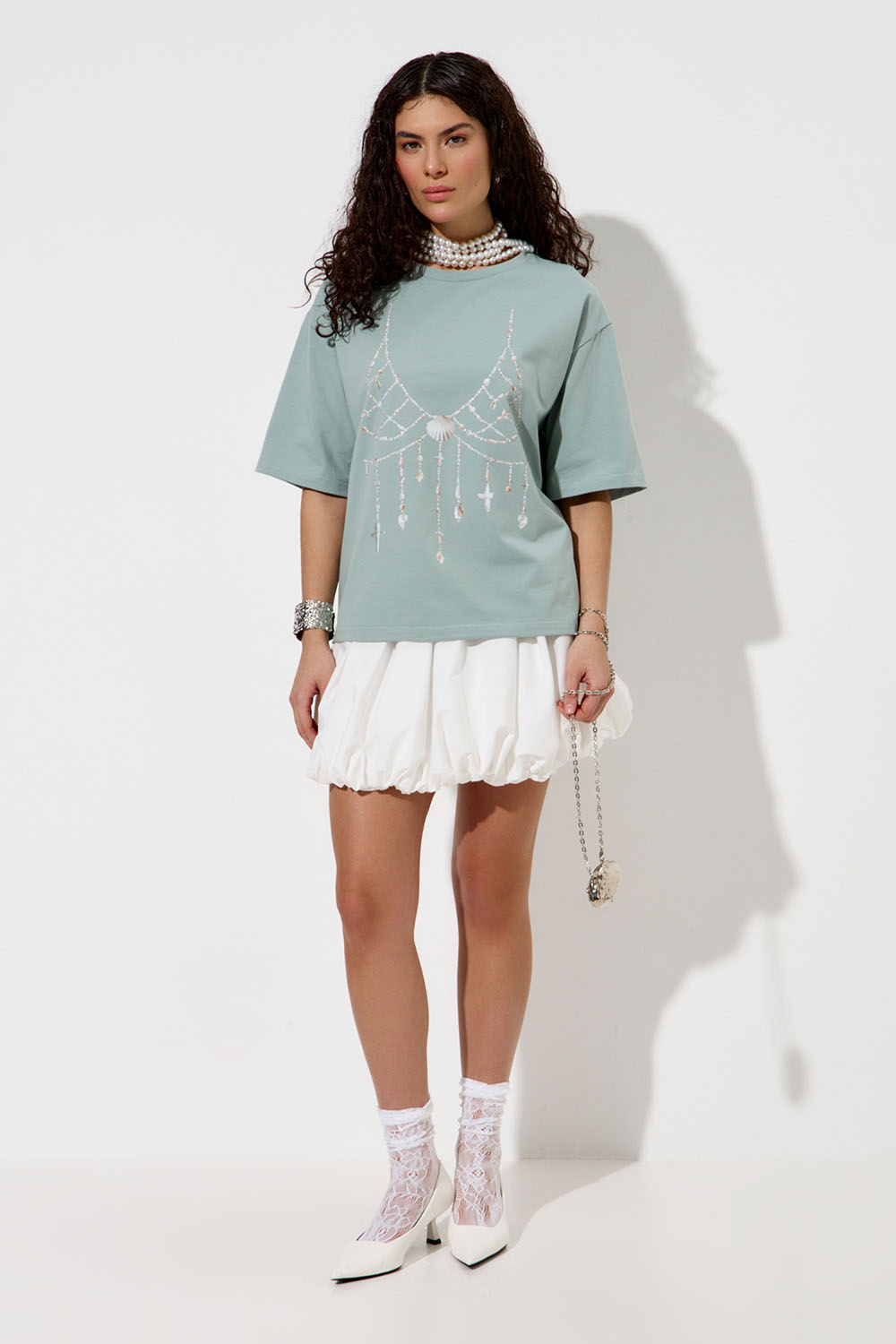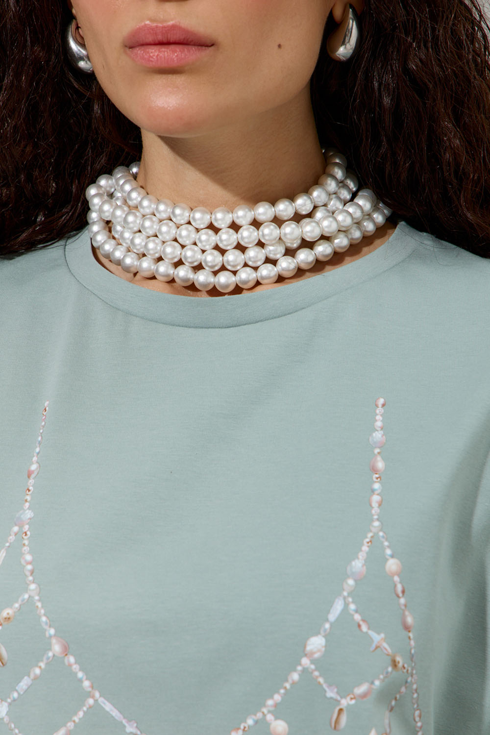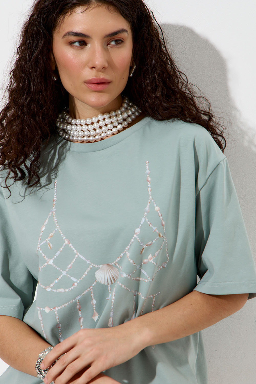 - Футболка с принтом "Жемчужный бра" мятного цвета