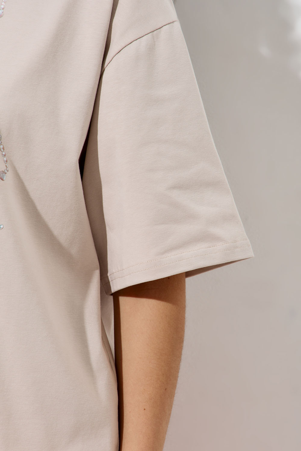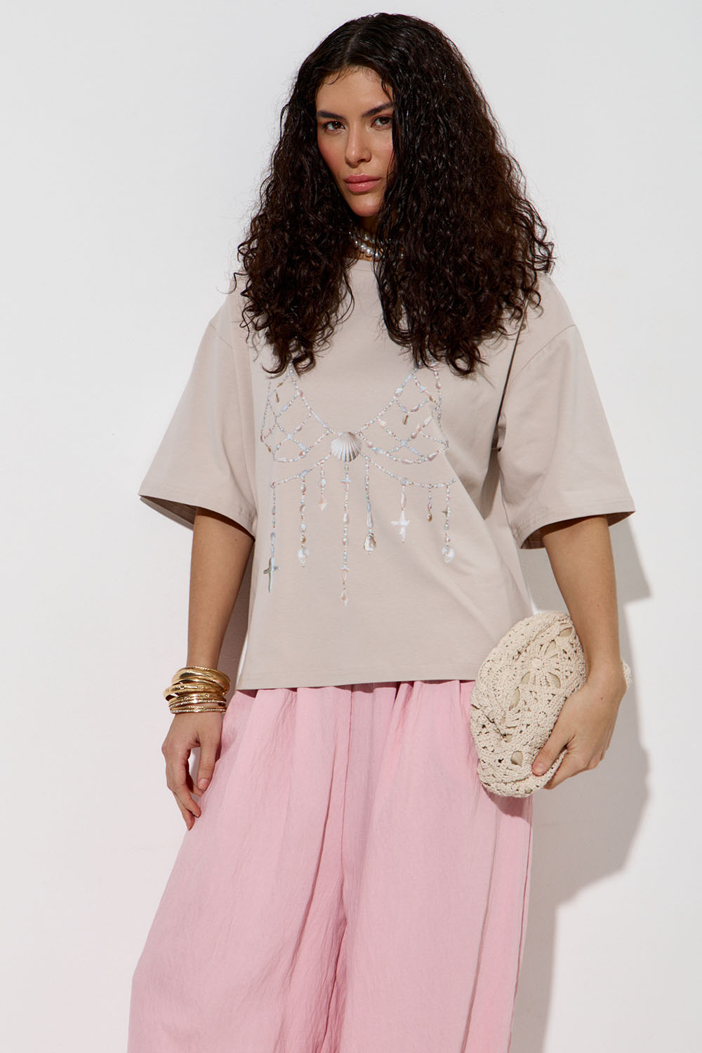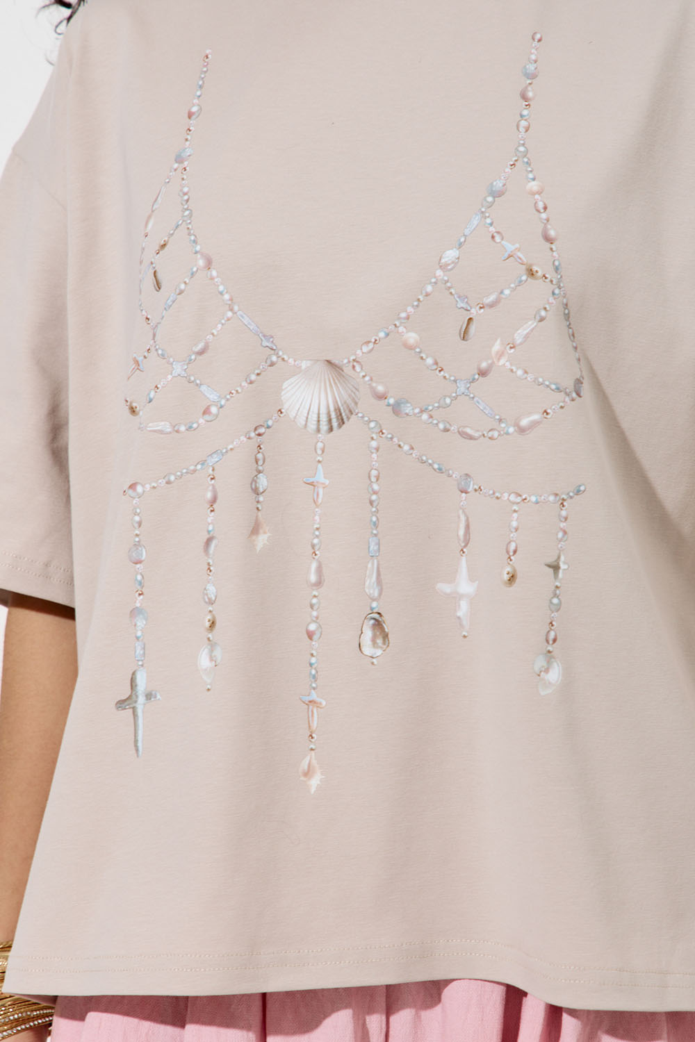 - Футболка с принтом "Жемчужный бра" серо-бежевого цвета