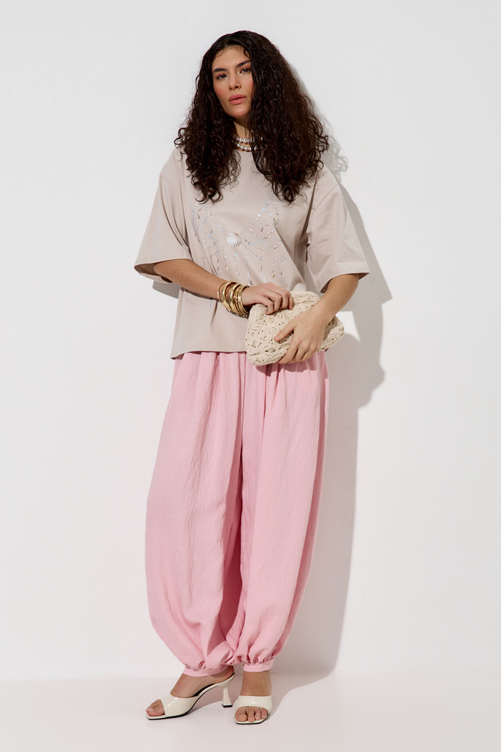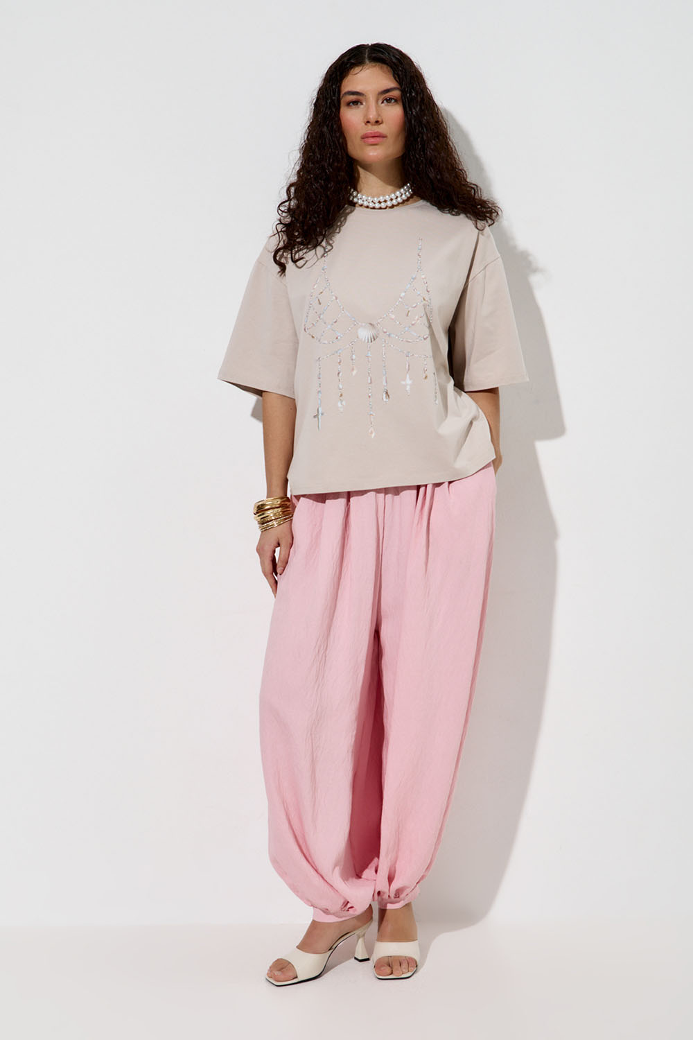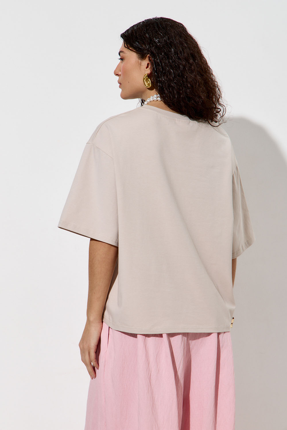 - Футболка с принтом "Жемчужный бра" серо-бежевого цвета