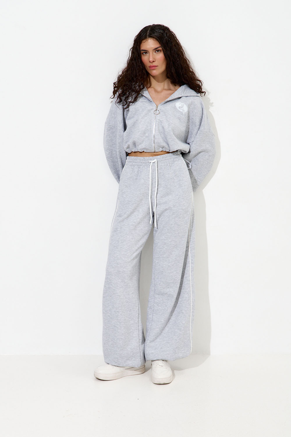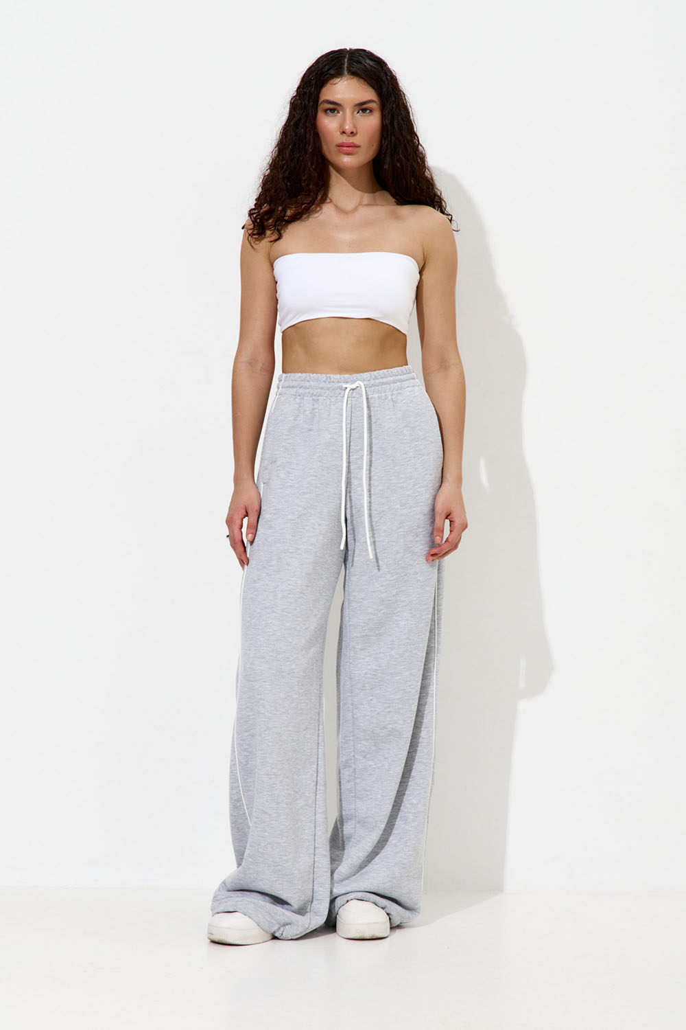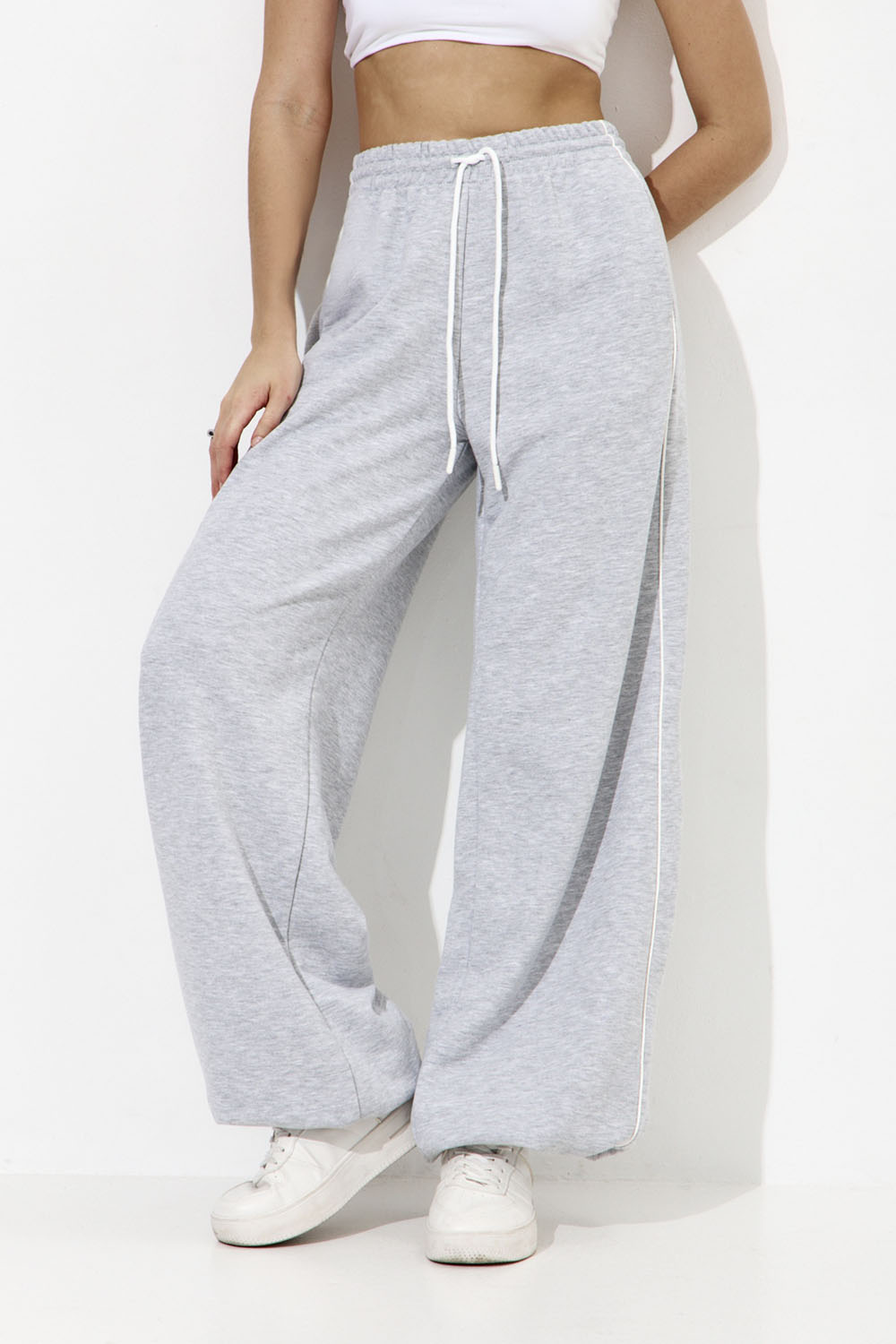 Широкие джоггеры без начеса с кантом цвета серый меланж купить по цене 5990 руб с доставкой по России – интернет-магазин DARSI