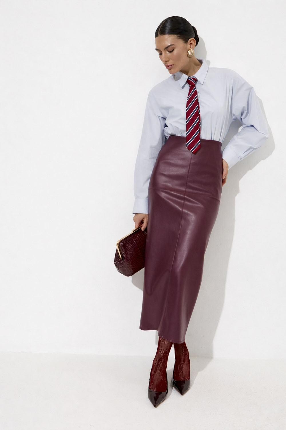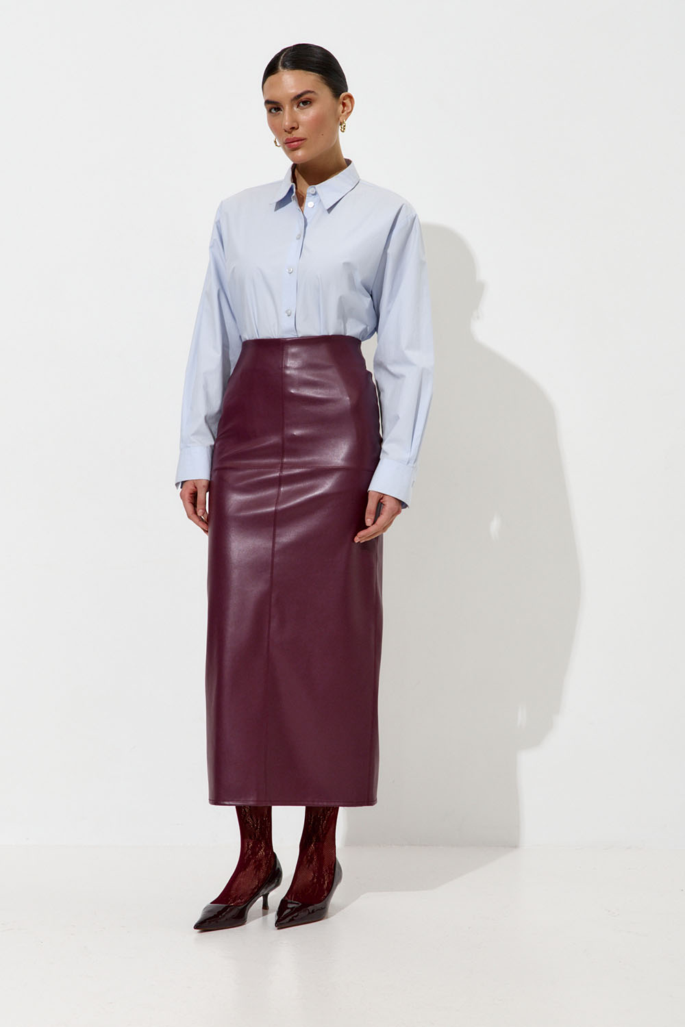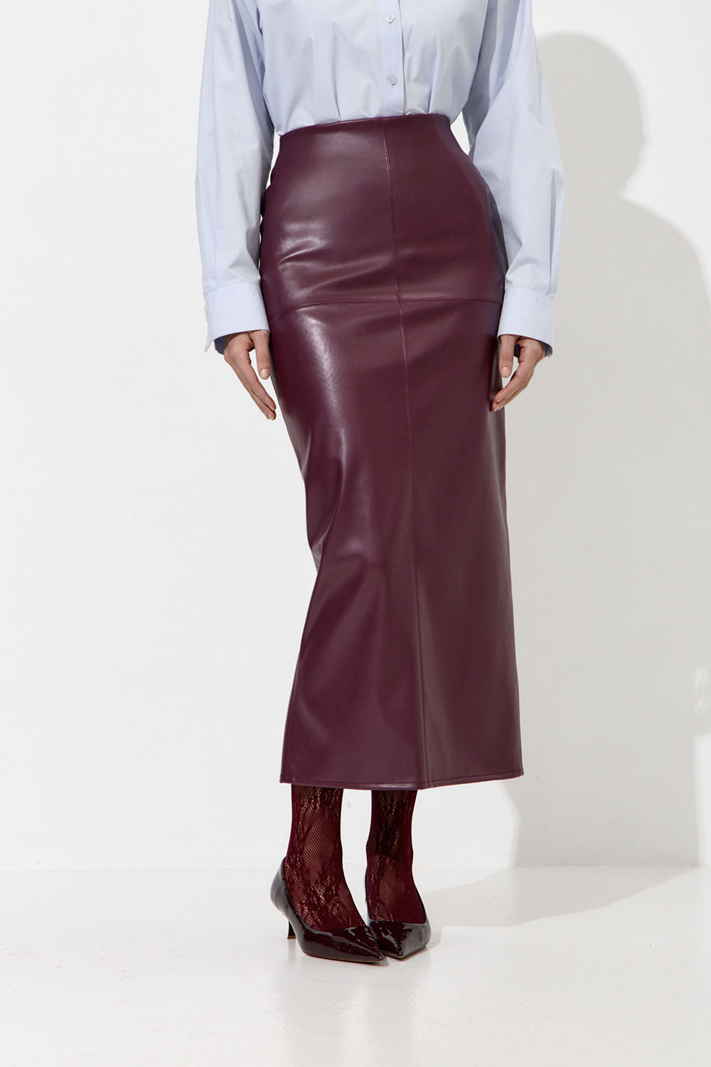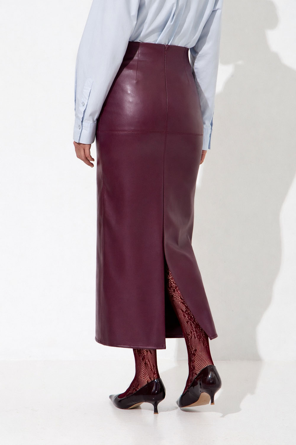 Юбка карандаш из экокожи сливового цвета купить по цене 6590 руб с доставкой по России – интернет-магазин DARSI
