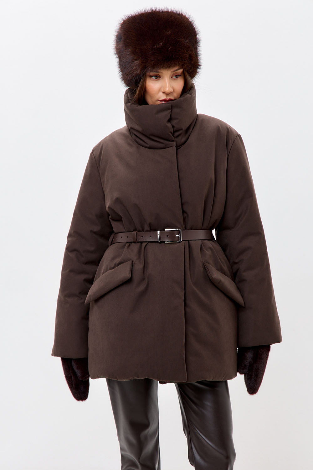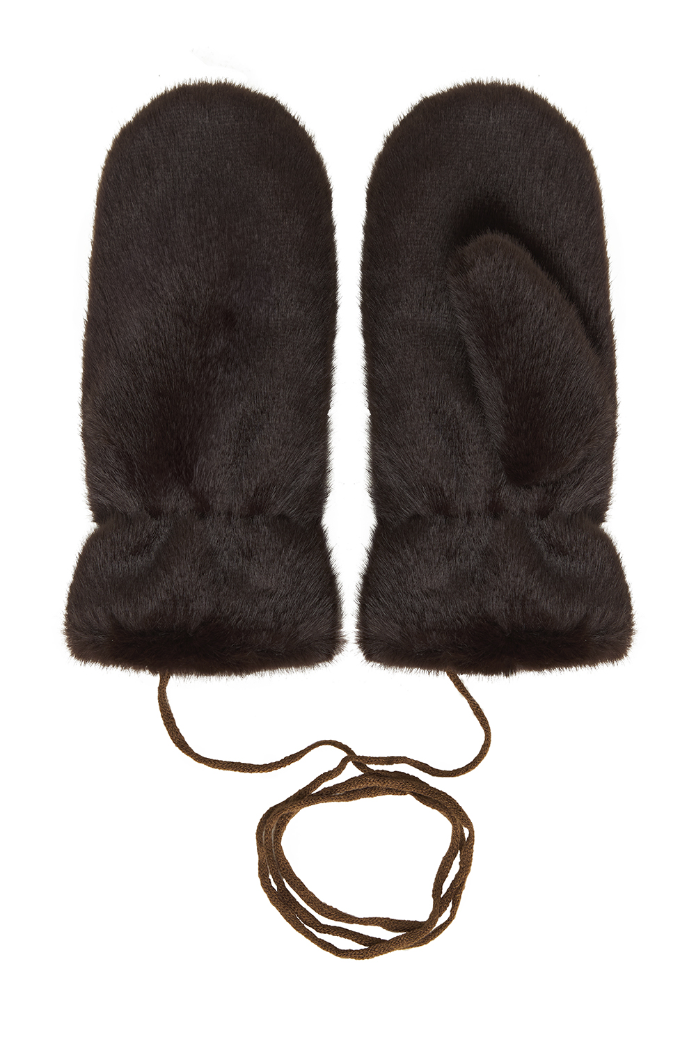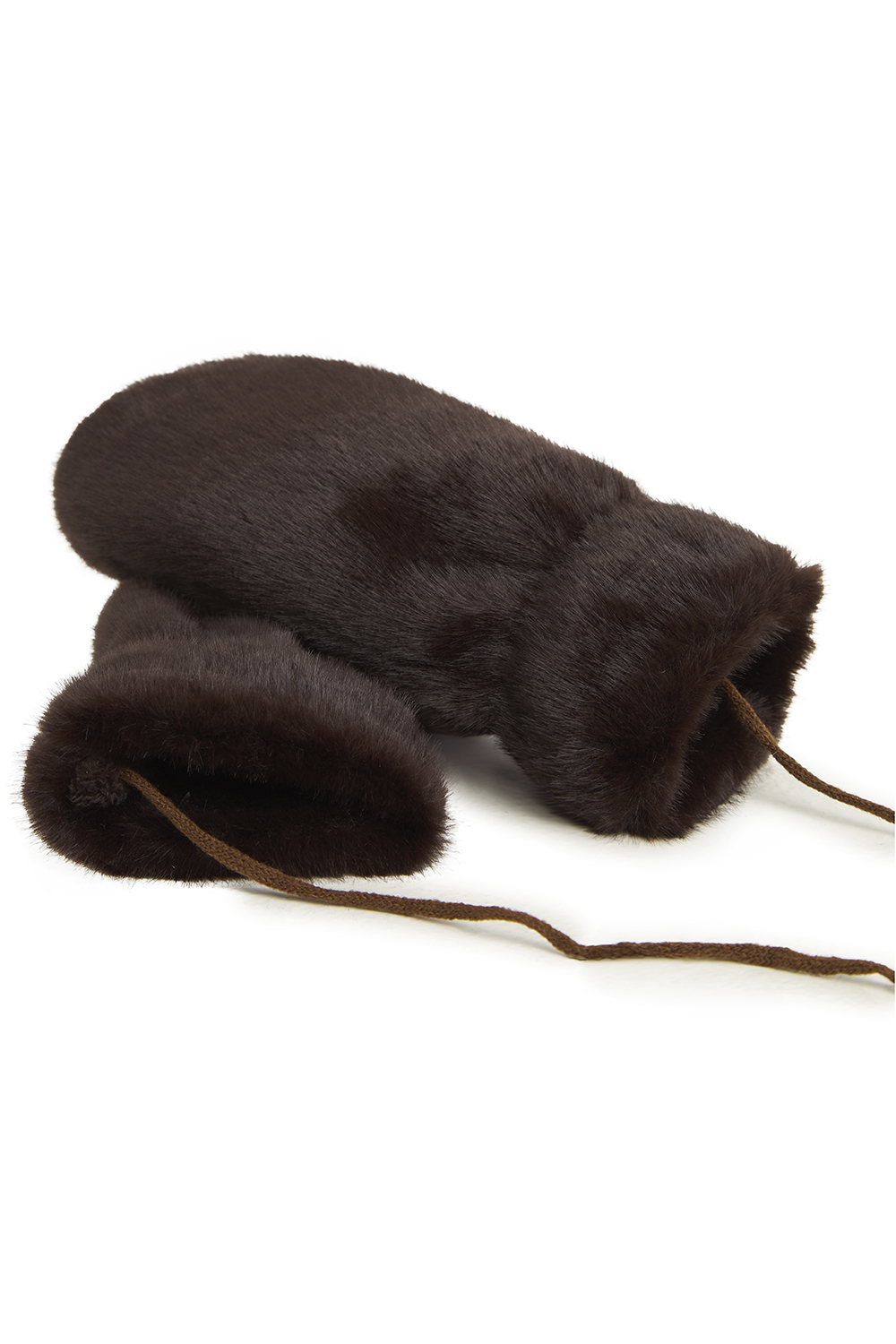 Варежки зимние из эко-меха шоколадного цвета