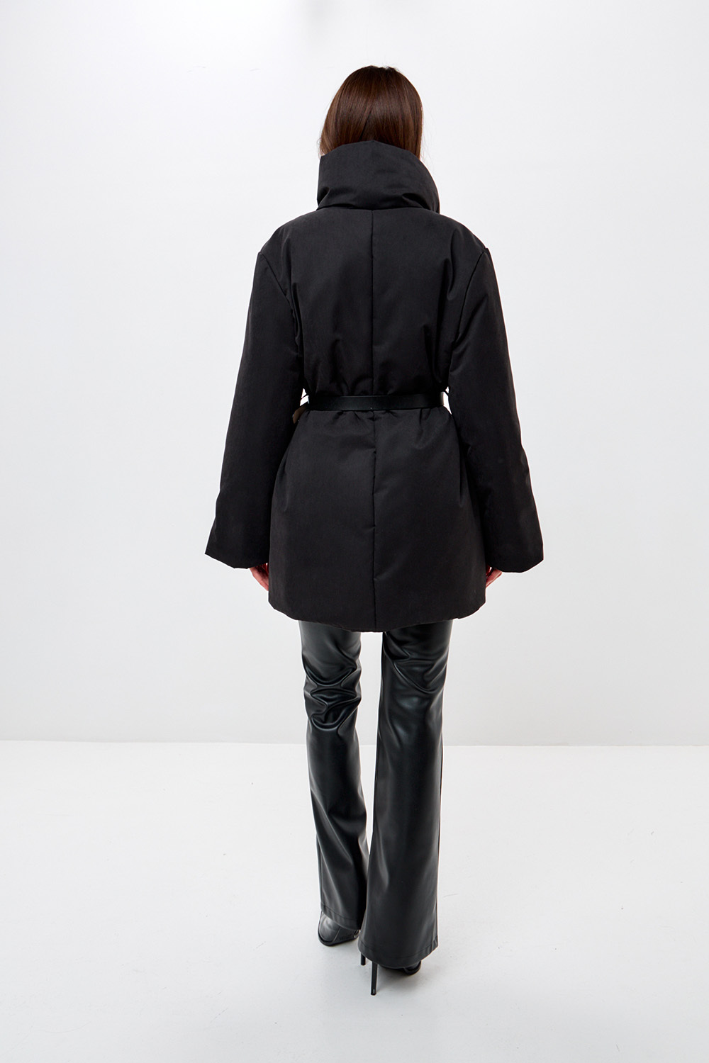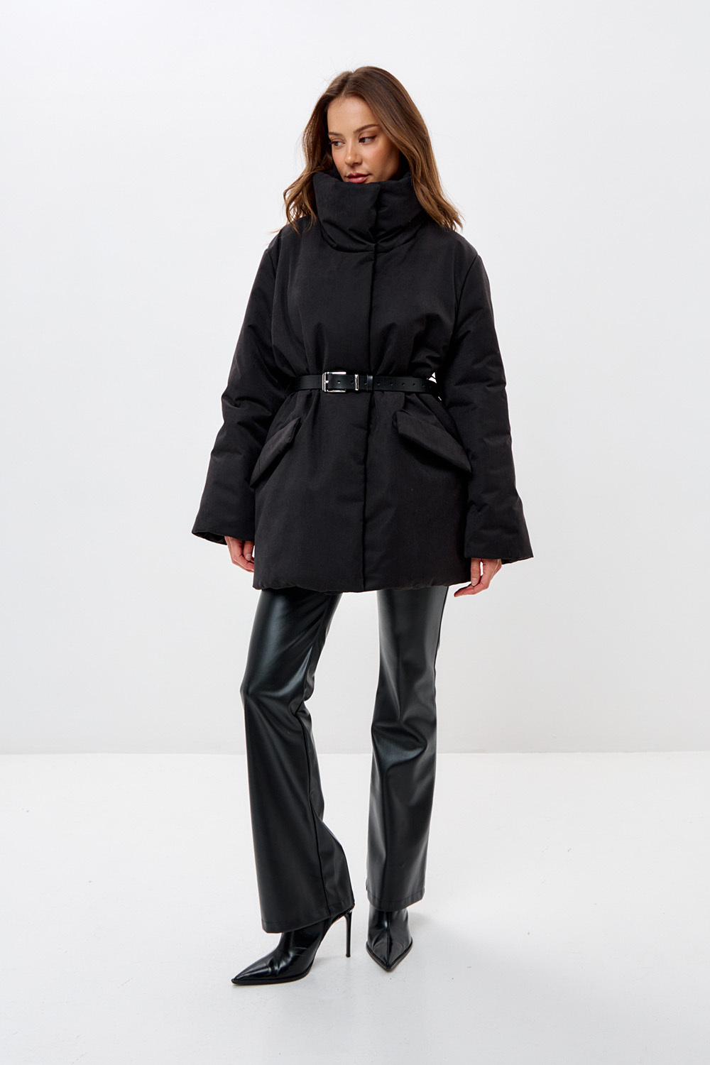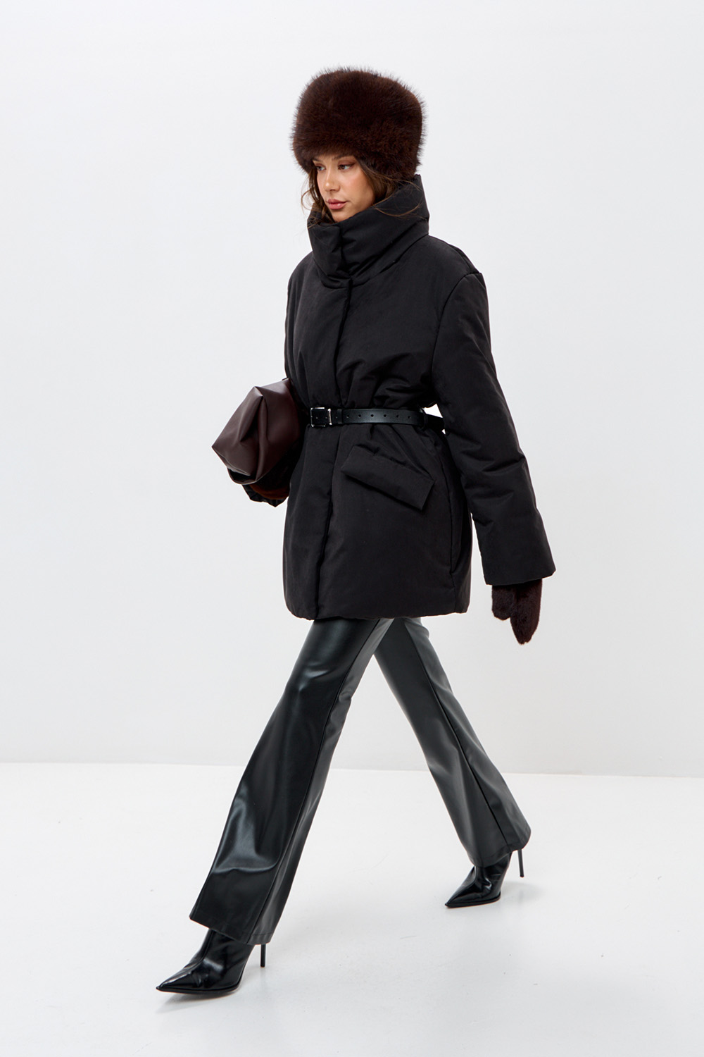 Зимняя куртка приталенного кроя в пиджачном стиле для комфортной и стильной зимы. Структурный аккуратный силуэт, втачной рукав, минимум деталей и швов, акцентные дутые карманы клапаны. Модель выполнена из мембранной ткани в черном цвете с дополнительной пропиткой для влаго- и ветрозащиты. Температурный режим до –20°C. В комплекте ремень из натуральной кожи в тон куртки.