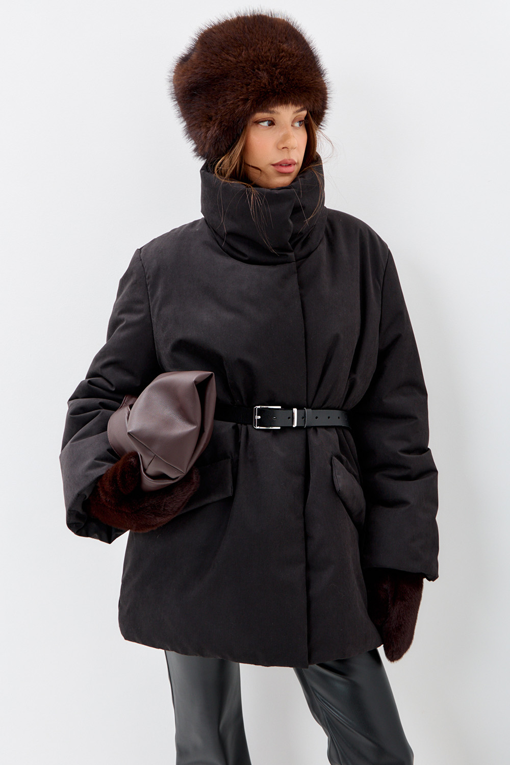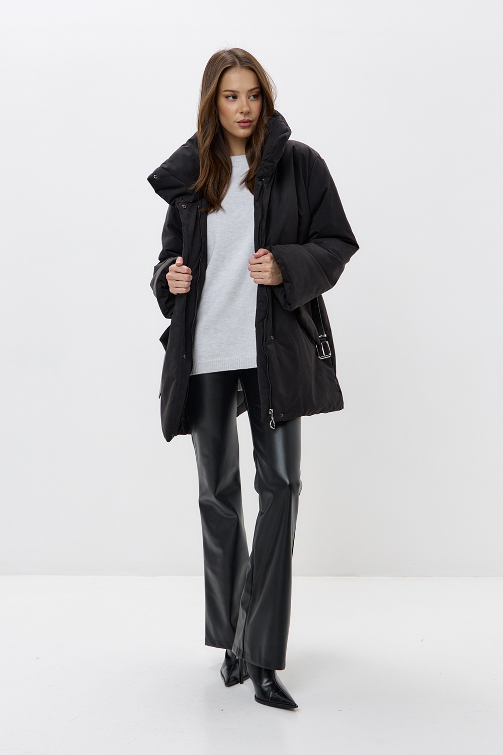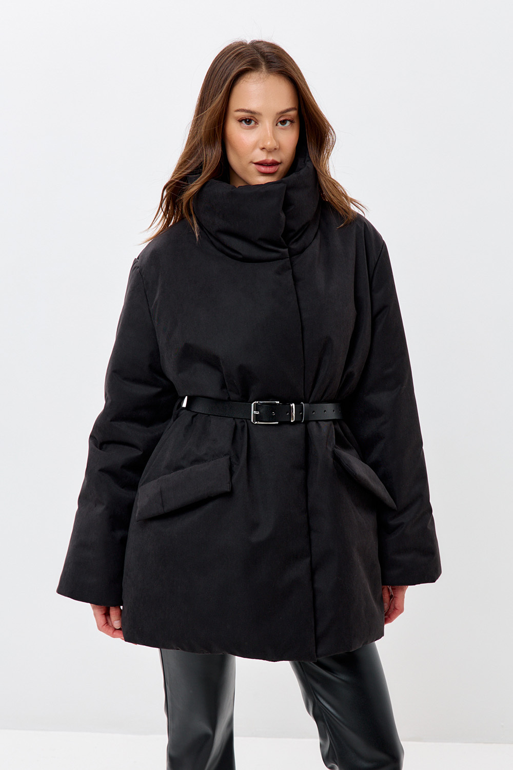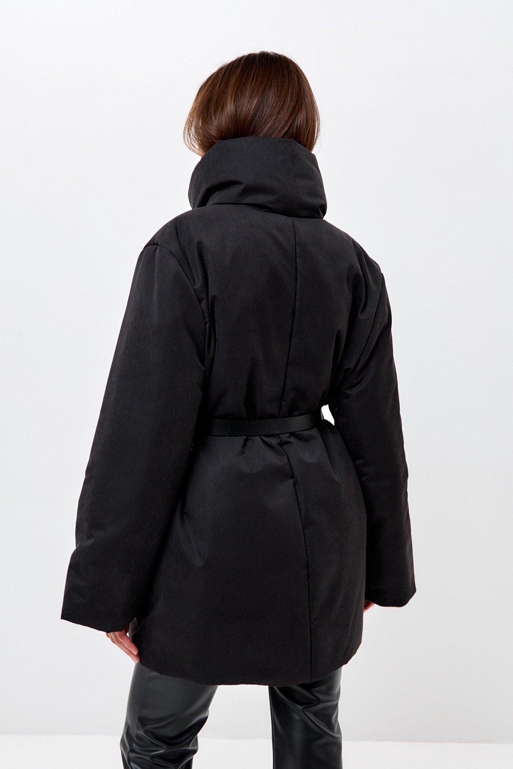 Зимняя куртка приталенного кроя в пиджачном стиле для комфортной и стильной зимы. Структурный аккуратный силуэт, втачной рукав, минимум деталей и швов, акцентные дутые карманы клапаны. Модель выполнена из мембранной ткани в черном цвете с дополнительной пропиткой для влаго- и ветрозащиты. Температурный режим до –20°C. В комплекте ремень из натуральной кожи в тон куртки.