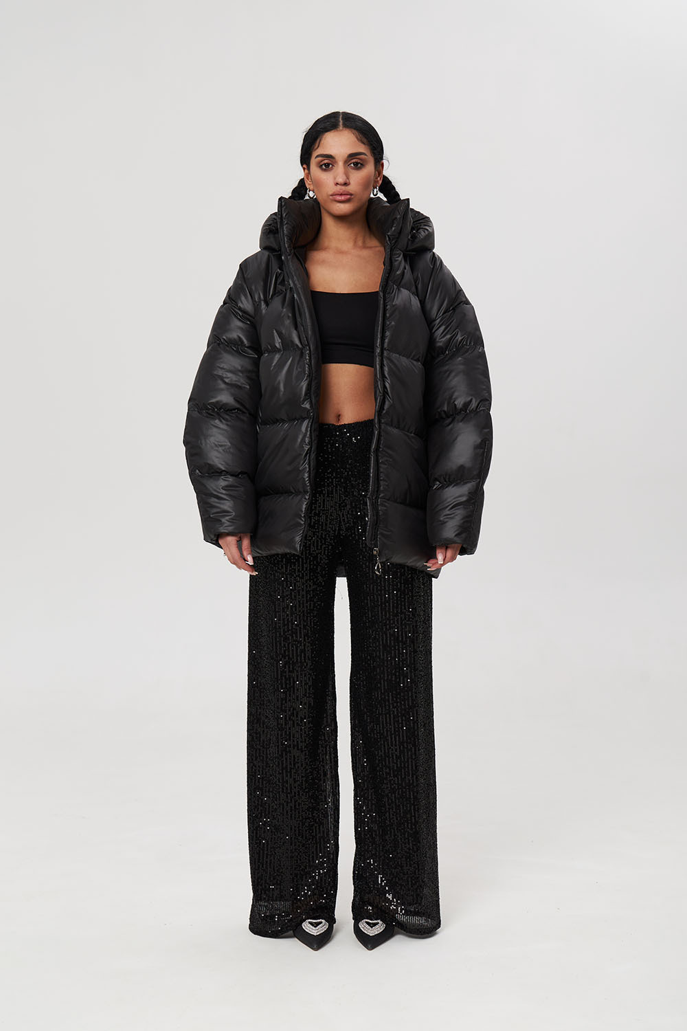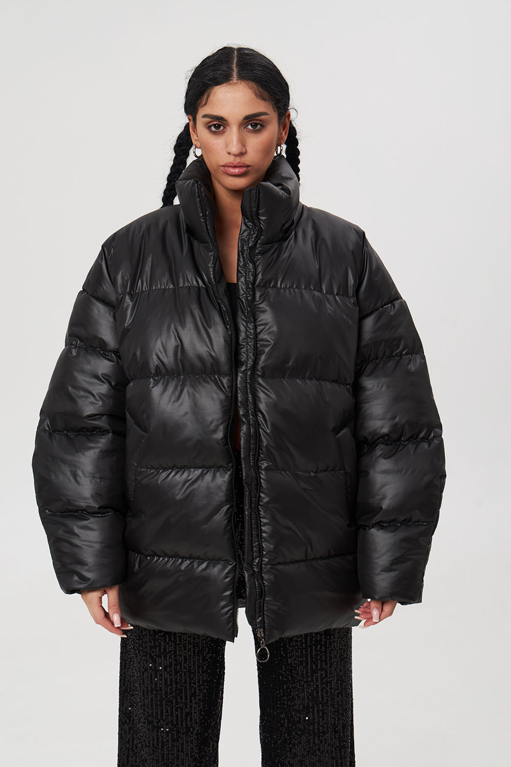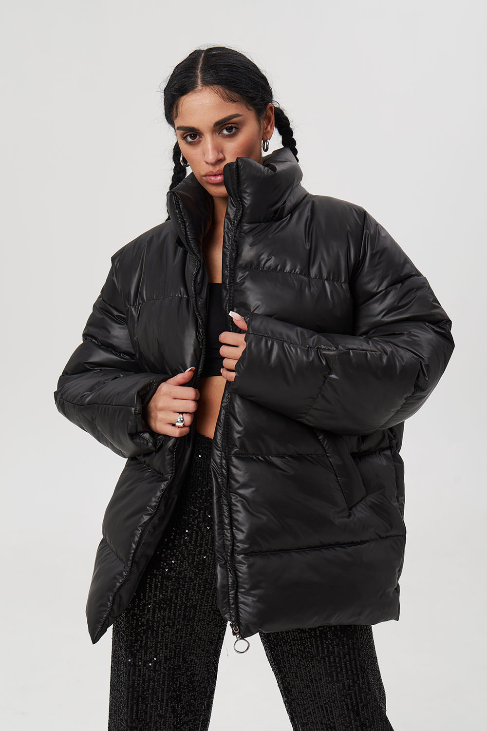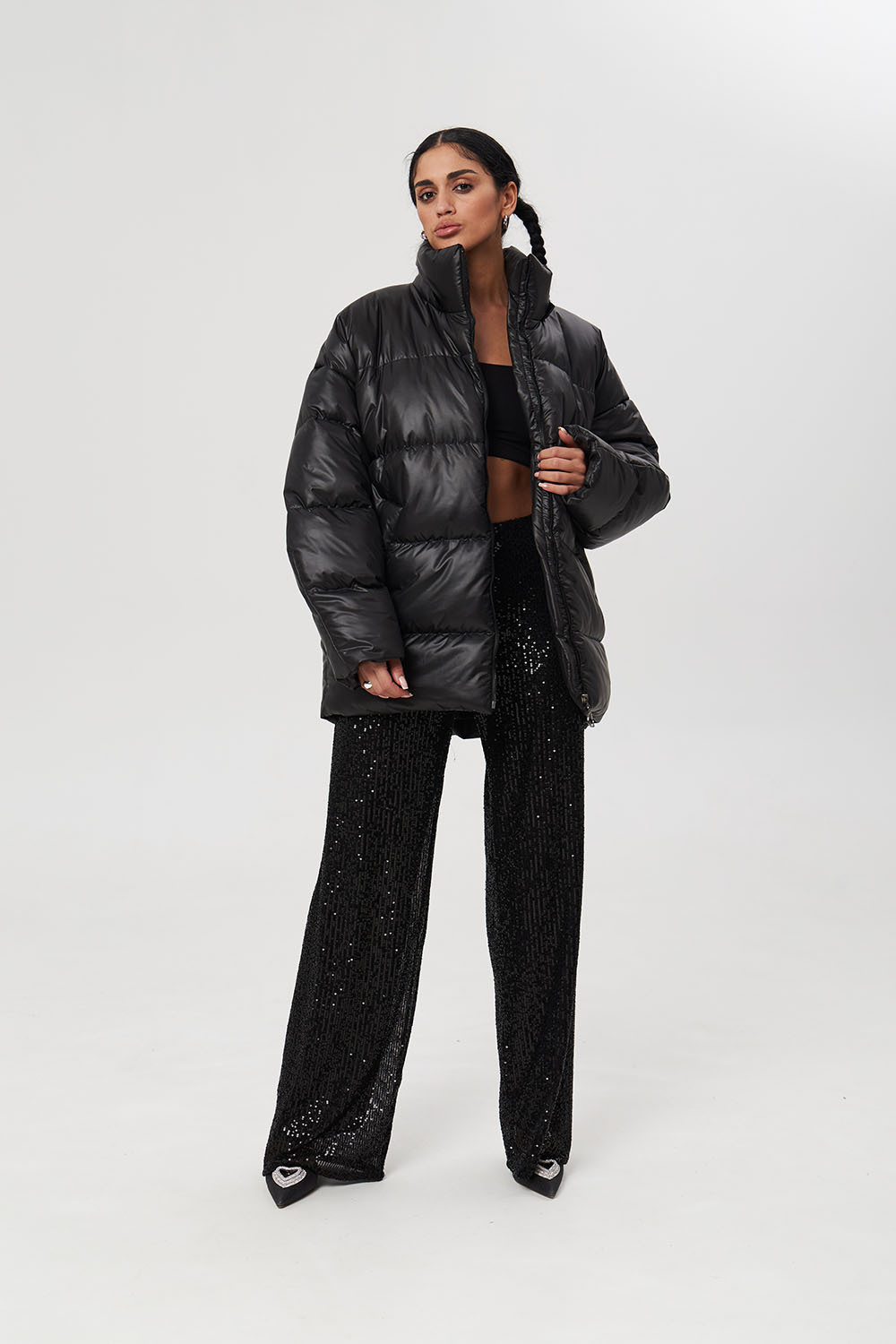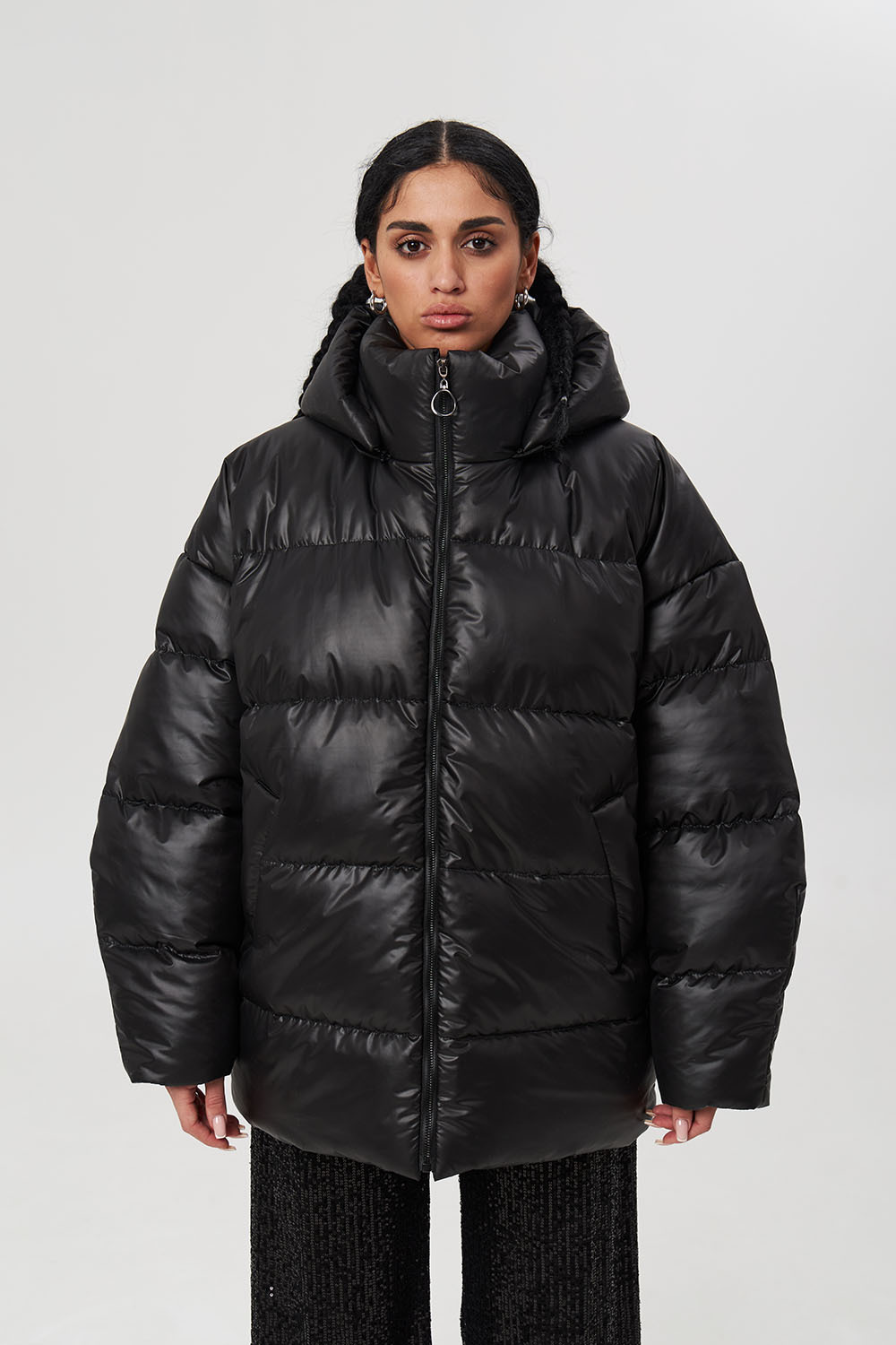 - Пуховик средней длины 2.0 черного цвета