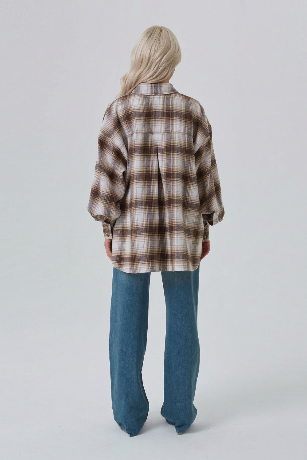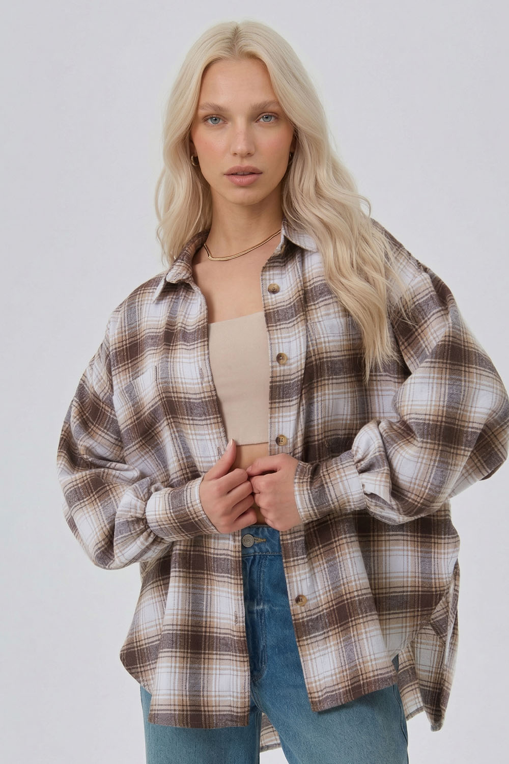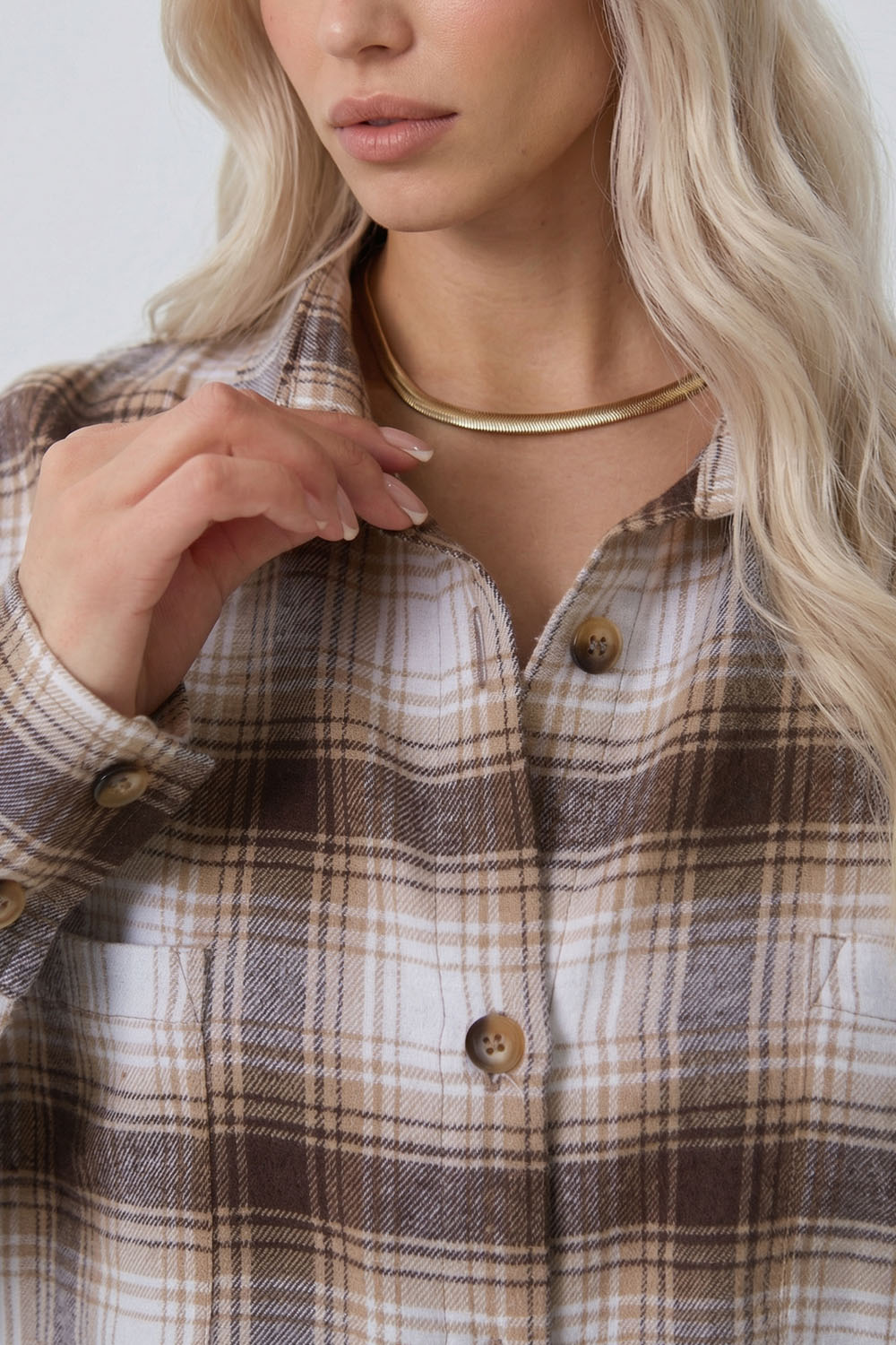 Рубашка из фланели бежевого цвета в клетку купить по цене 5690 руб с доставкой по России – интернет-магазин DARSI