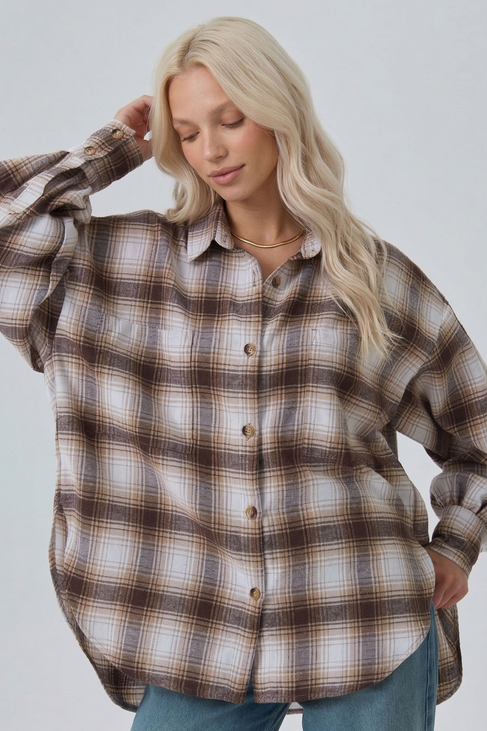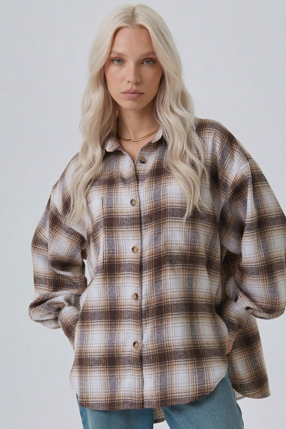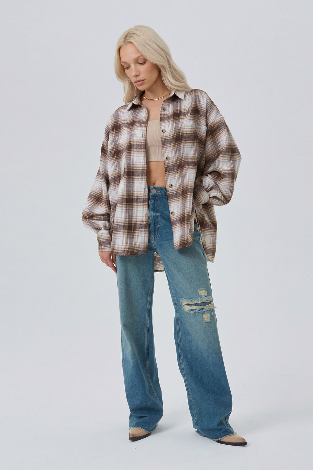 Рубашка из фланели бежевого цвета в клетку купить по цене 5690 руб с доставкой по России – интернет-магазин DARSI