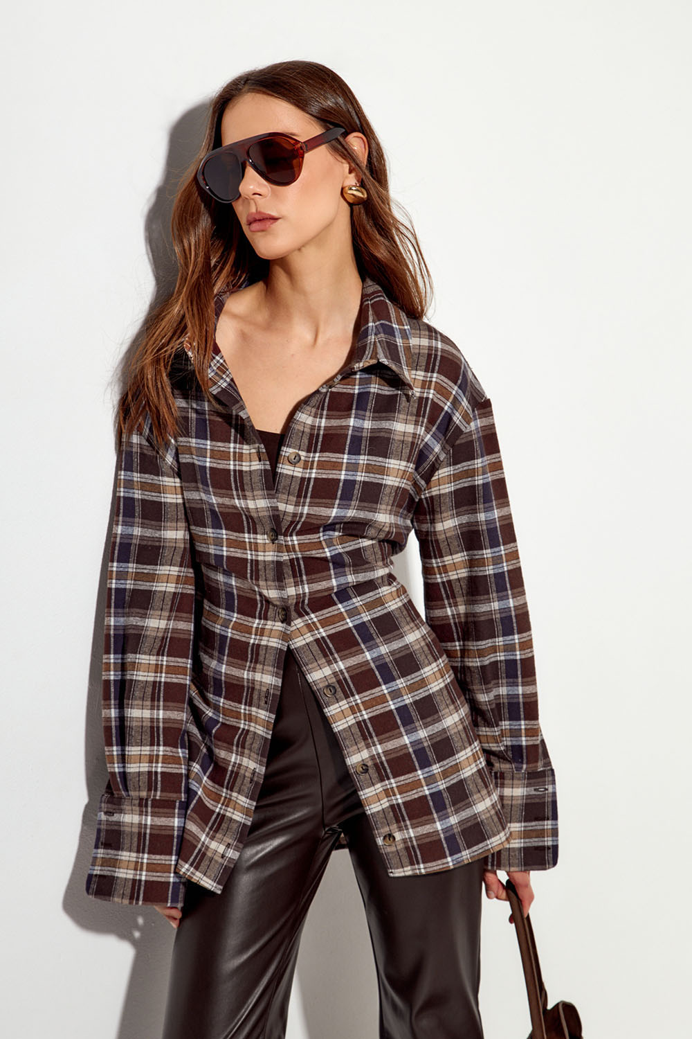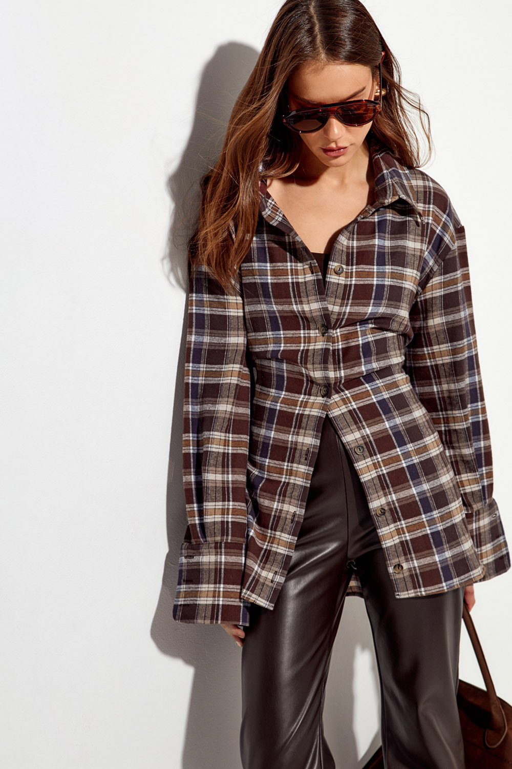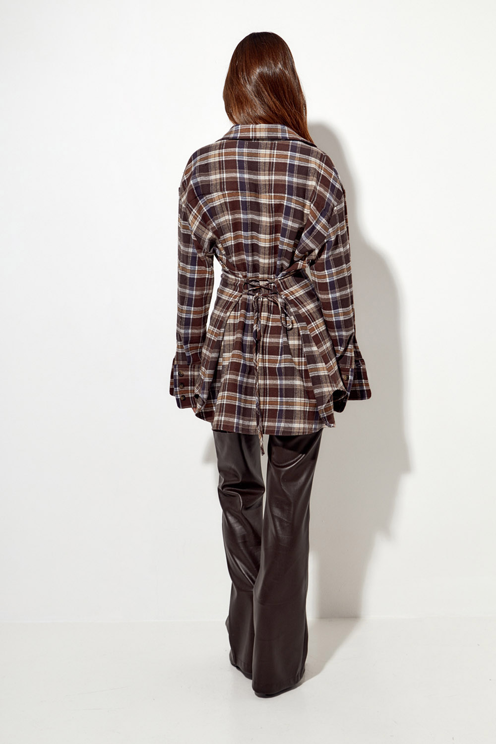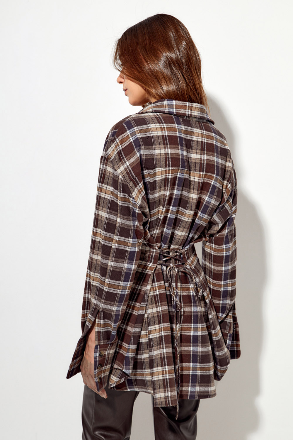 - Рубашка из фланели со шнуровкой цвета горький шоколад