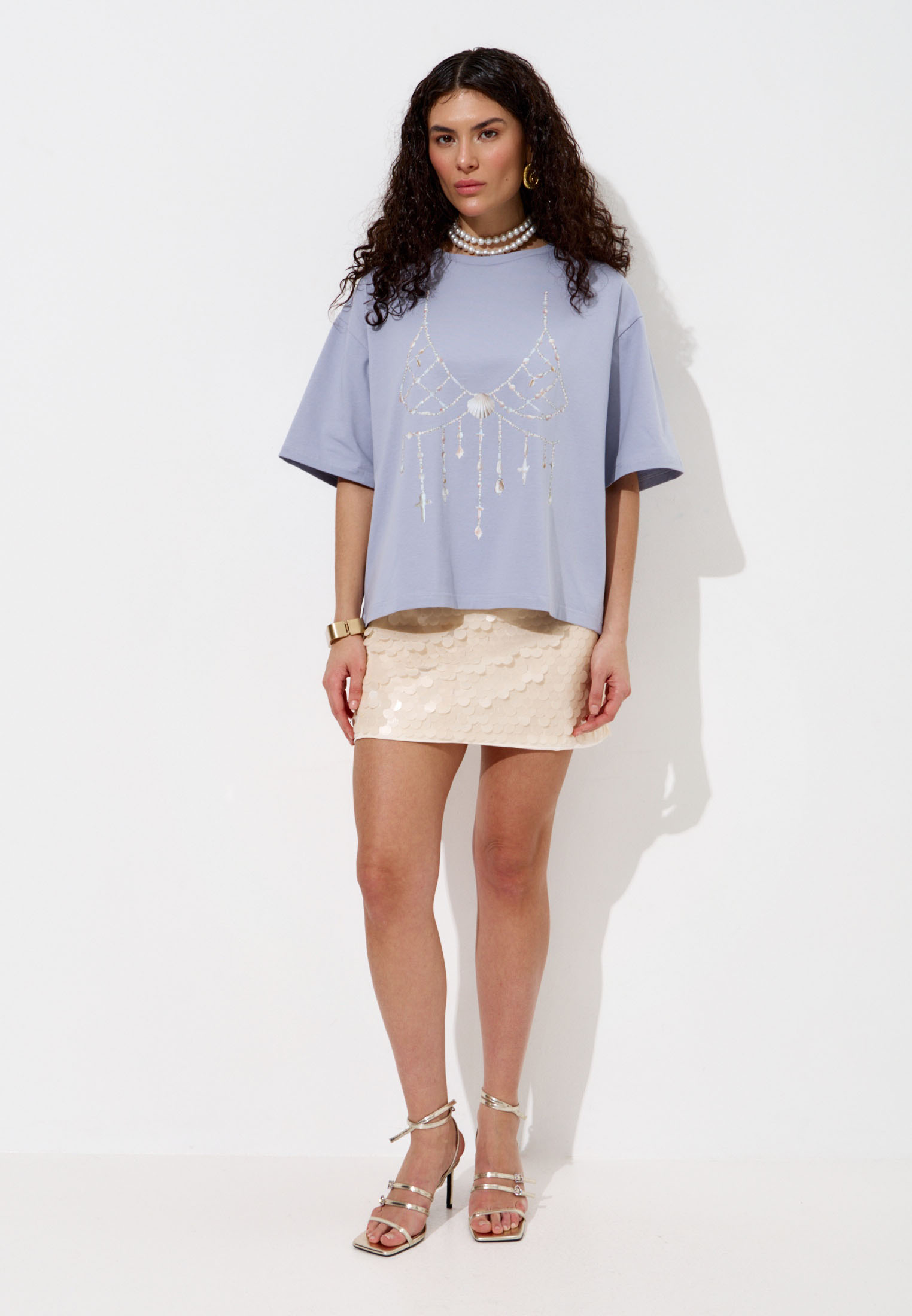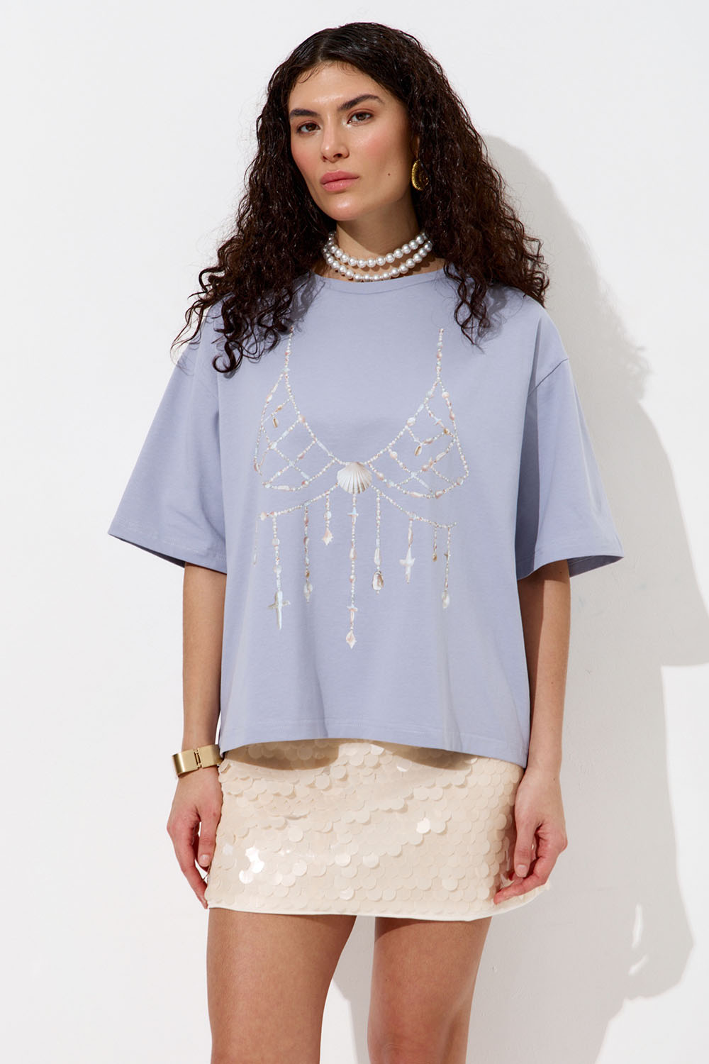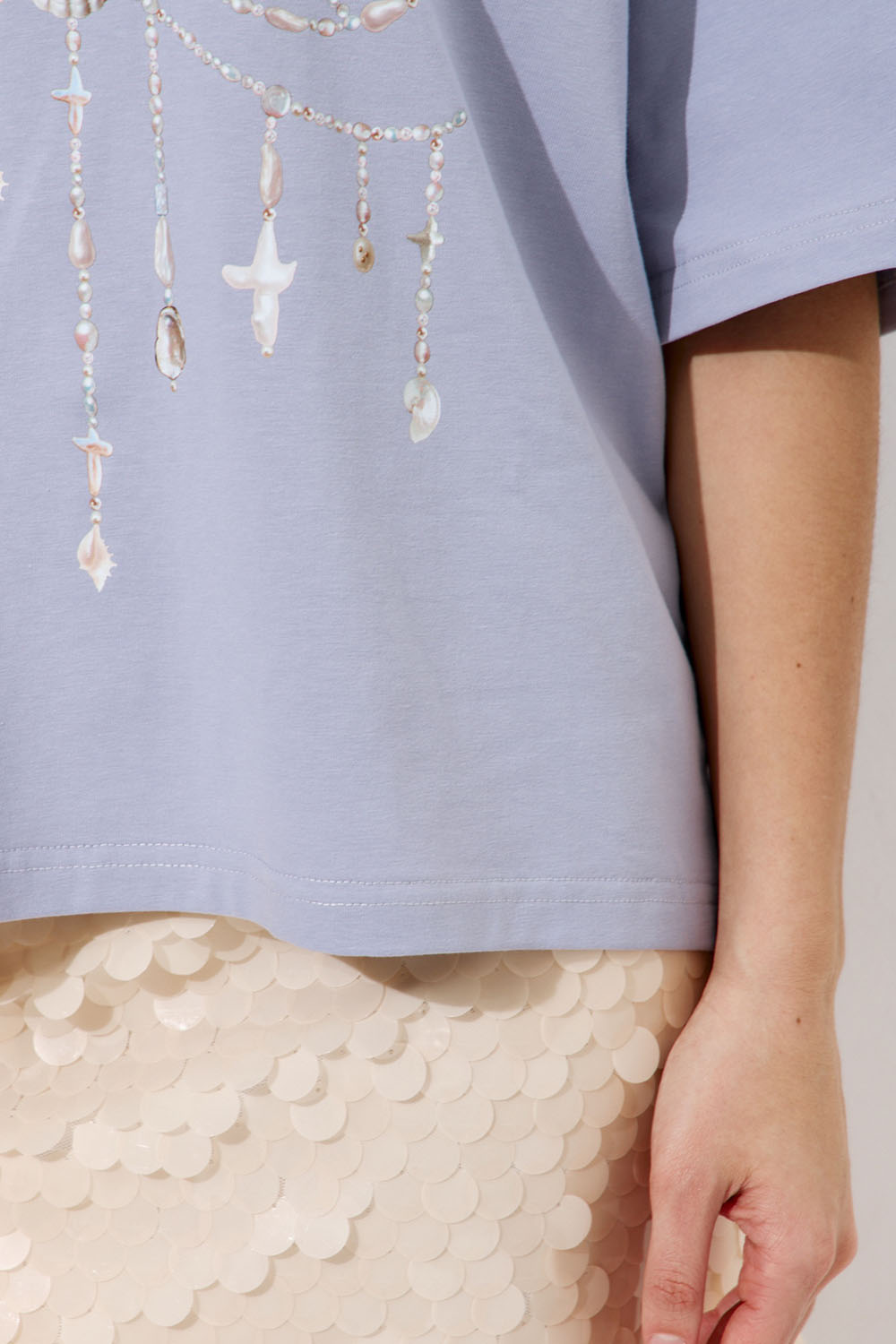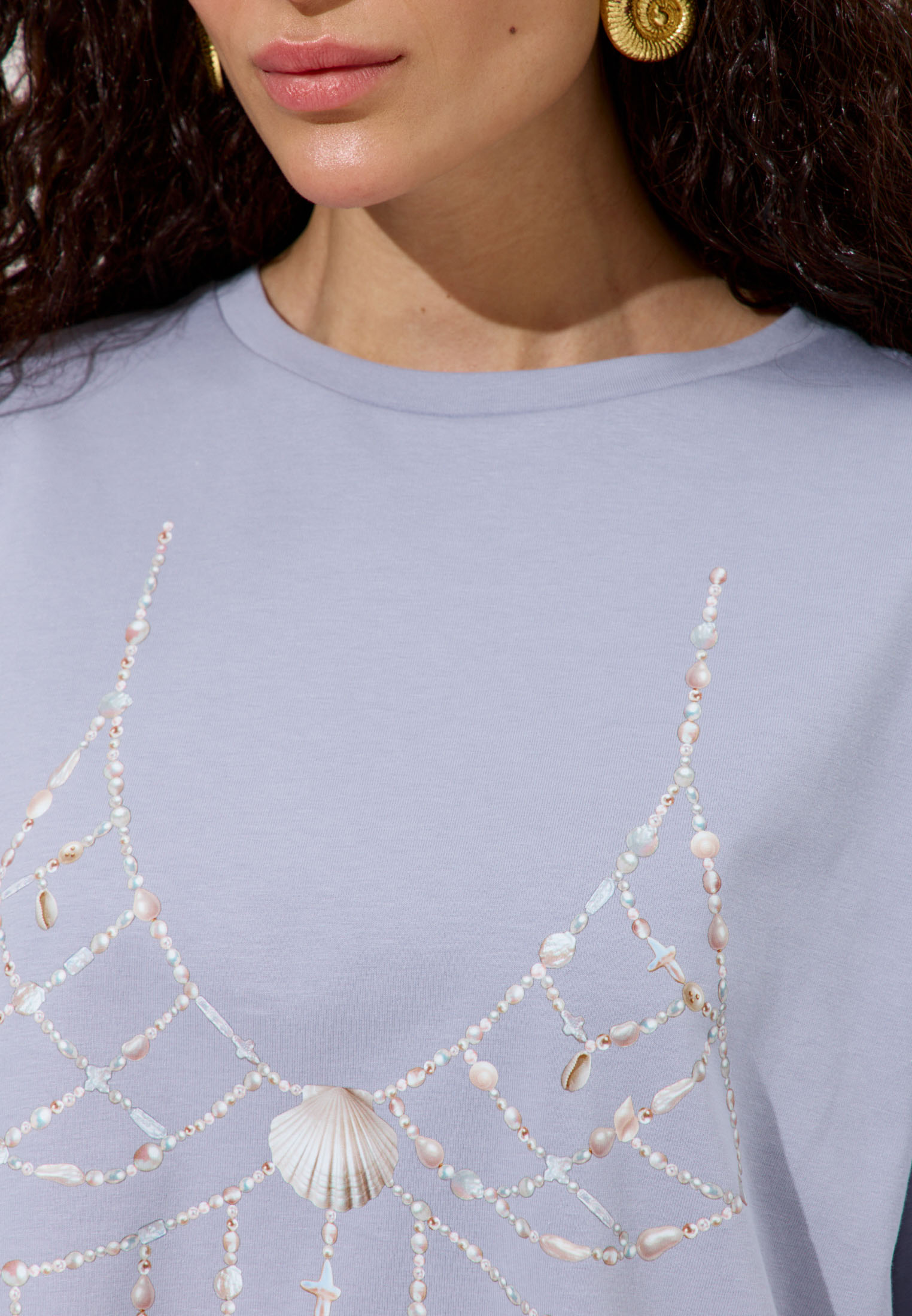 Футболка с принтом "Жемчужный бра" лавандового цвета купить по цене 4990 руб с доставкой по России – интернет-магазин DARSI