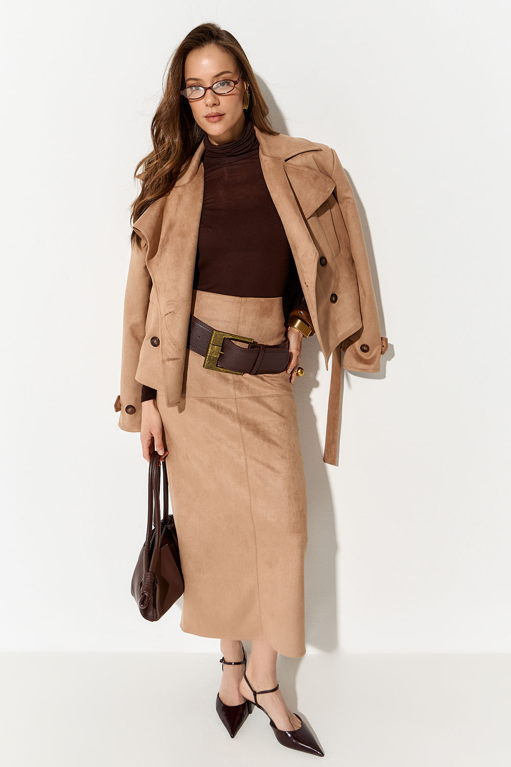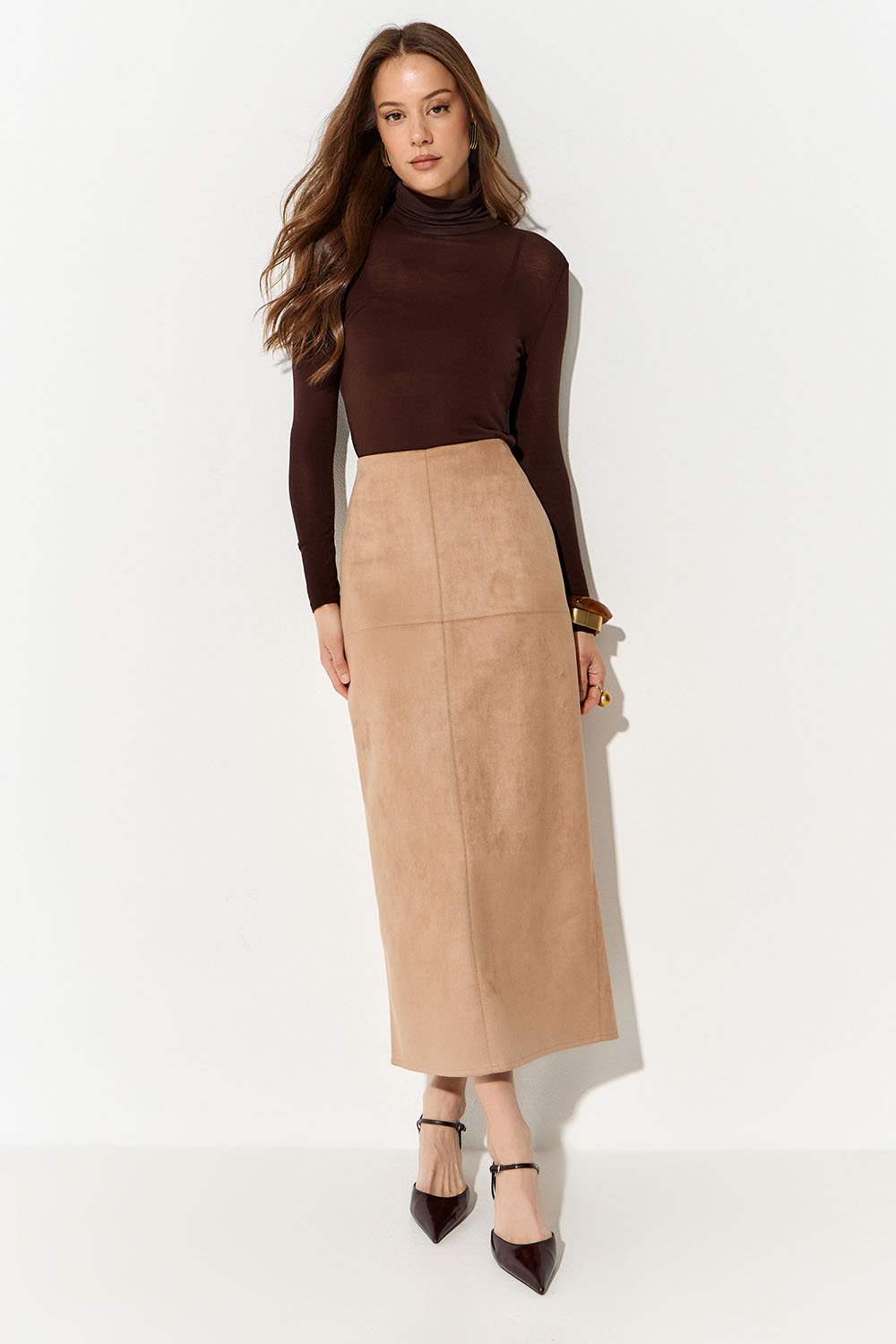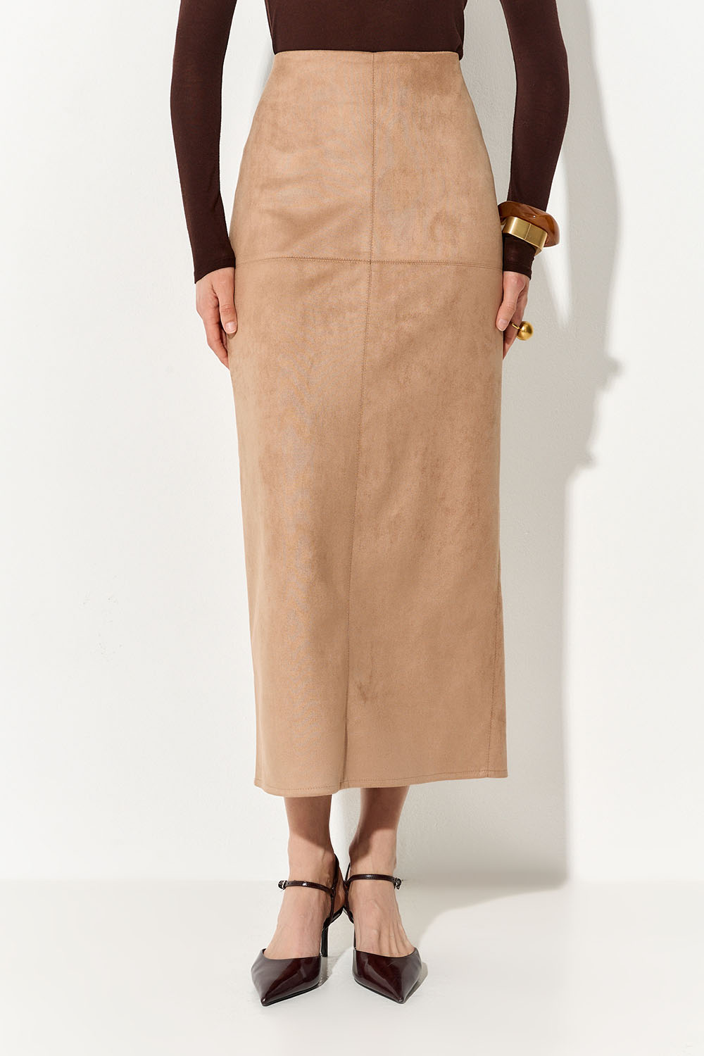 Юбка карандаш из экозамши цвета кэмел