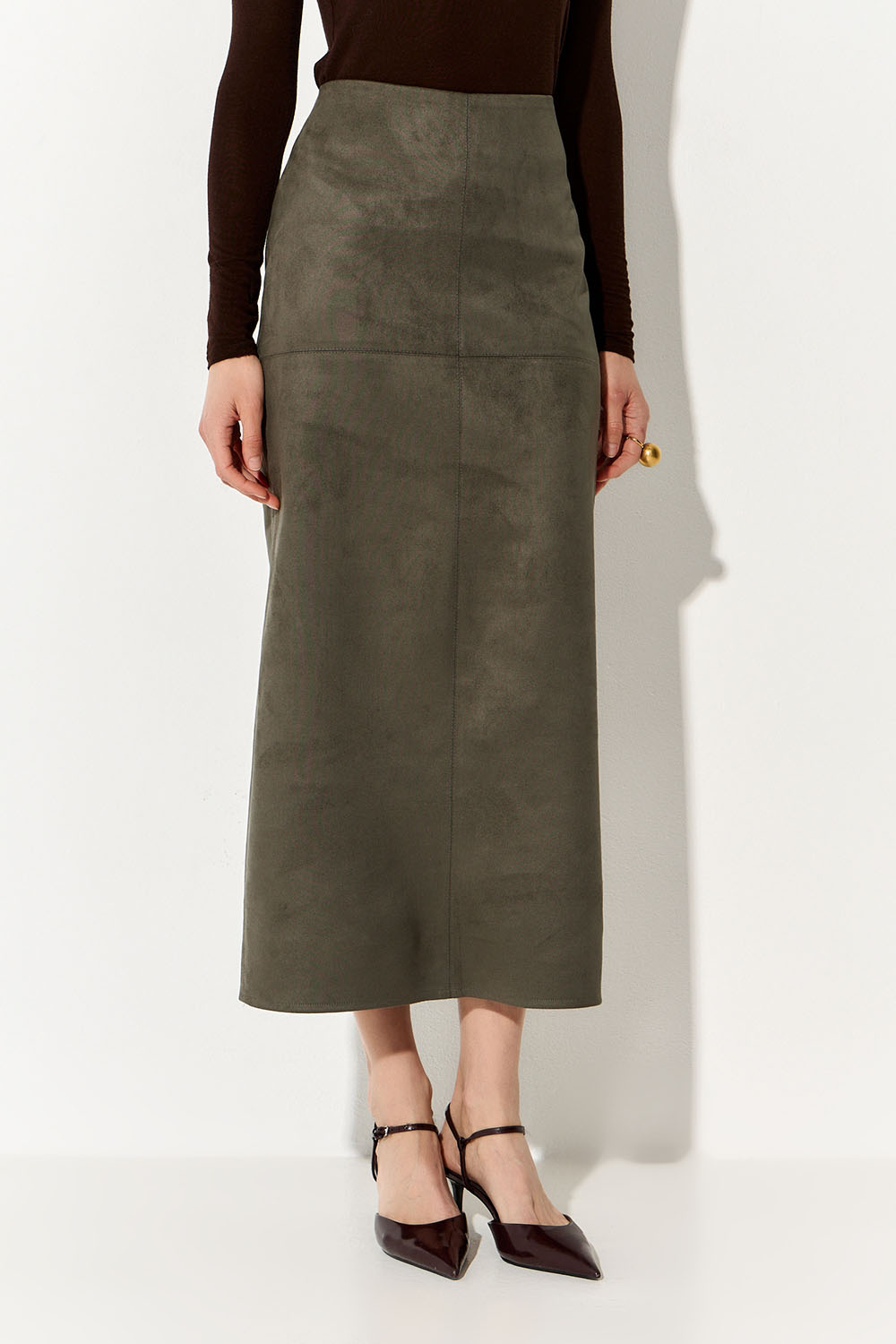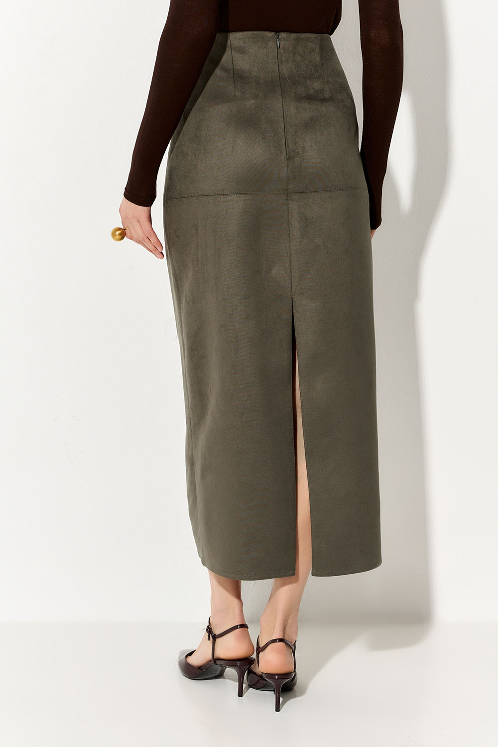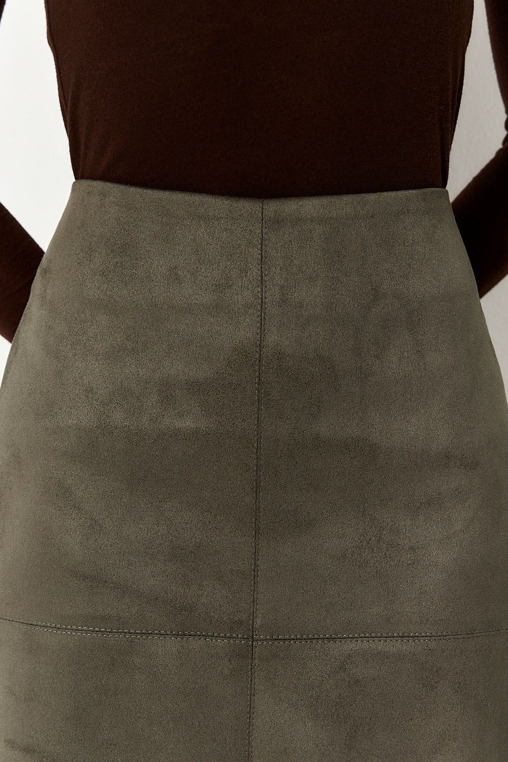 Юбка карандаш из экозамши цвета хаки