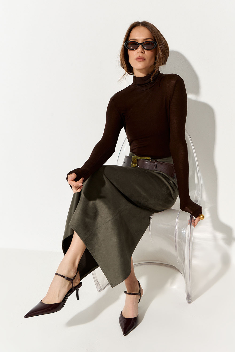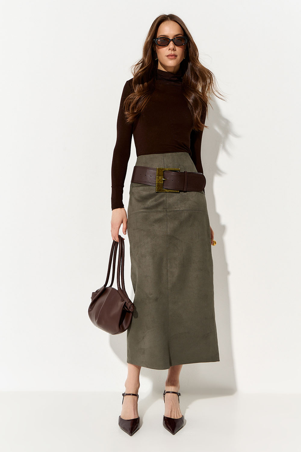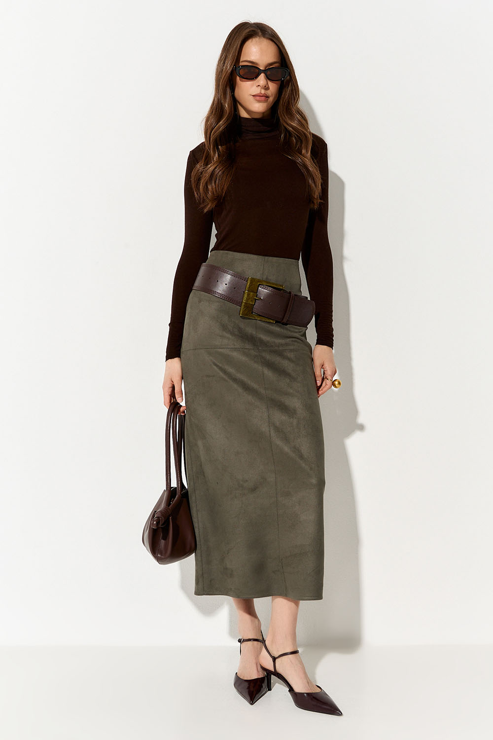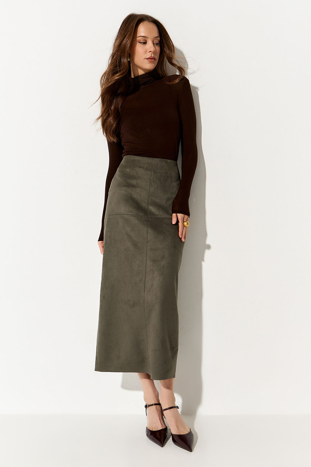 Юбка карандаш из экозамши цвета хаки