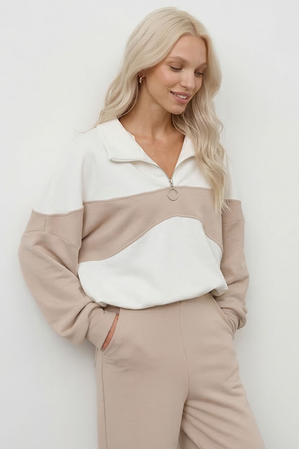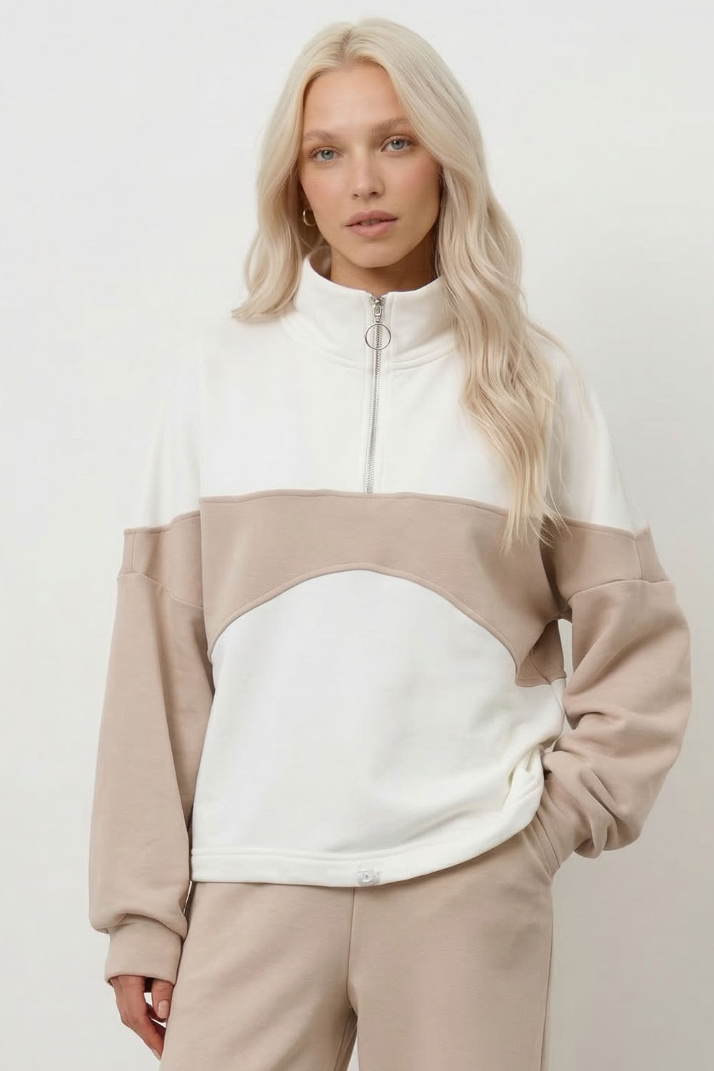 Олимпийка колор-блок бюстье цвета серо-беж/крем купить по цене 2190 руб с доставкой по России – интернет-магазин DARSI